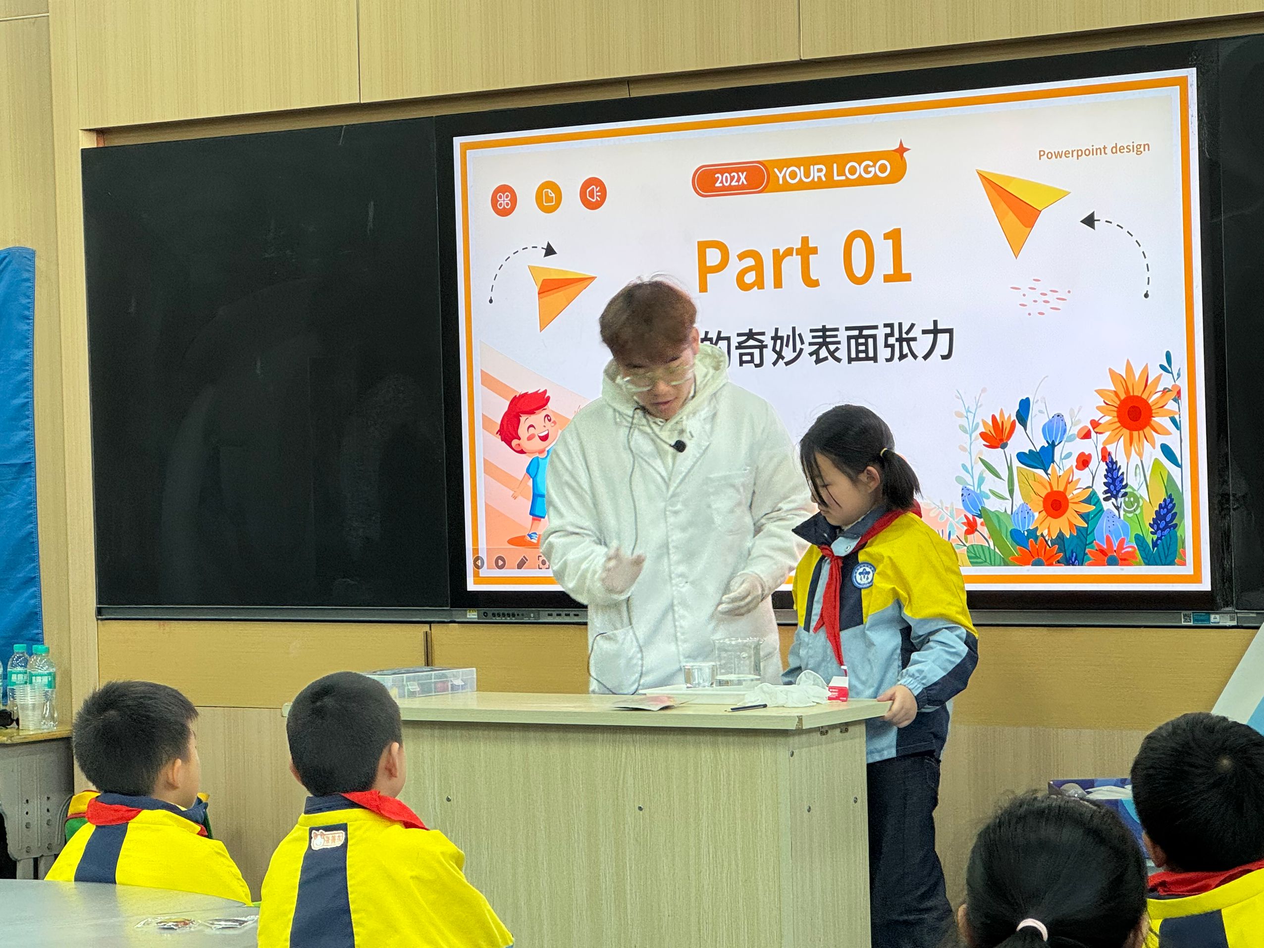 活动现场,志愿者们带来了多个妙趣横生的科学实验。在“‘吹’气球”实验中,志愿者将小苏打与酸混合,瞬间产生大量二氧化碳气体,气球迅速膨胀,神奇的变化让同学们惊叹不已。通过这个实验,同学们直观地了解了化学反应产生气体的原理。“水的表面张力”实验同样吸引了众多目光。志愿者小心地在水面上放置回形针等小物体,它们竟然能漂浮在水面而不沉下,这一违背日常认知的现象引发了同学们热烈讨论。志愿者借此深入浅出地讲解了表面张力的概念,让同学们感受到微观世界的奇妙。