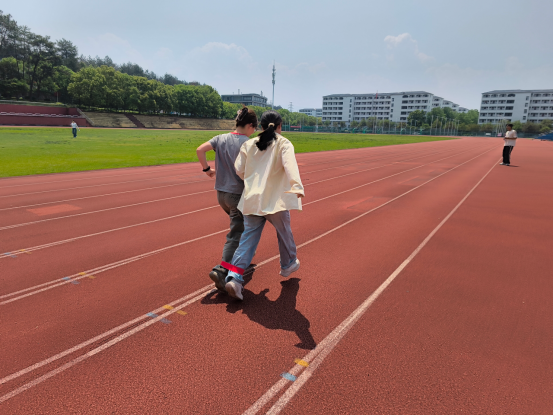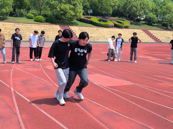 活动当天,同学们分成五个小组,每组八人,分别参与了“两人三足”和“团队跳大绳”两项团队合作游戏。在“两人三足”游戏中,同学们通过身体的协调配合,体会到了团队合作的重要性。每组选手在绑腿后需要相互配合,共同完成从起点到终点的冲刺任务。这一过程中,同学们不仅需要掌握节奏,还需要通过默契的沟通来避免失误,充分体现了户外教育在提升学生团队协作能力和实践能力方面的独特价值。