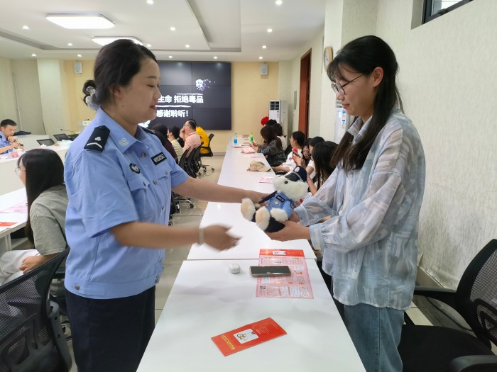 随后,屯溪公安分局刑侦大队副大队长朱苗苗为在场师生带来了一场内容详实、深入浅出的禁毒知识专题讲座。朱大队长结合实际案例,详细介绍了毒品的种类、危害以及如何预防和抵制毒品的侵害。他生动的讲解让同学们深刻认识到毒品对个人、家庭以及社会的巨大危害,进一步增强了同学们的禁毒意识和自我保护意识。