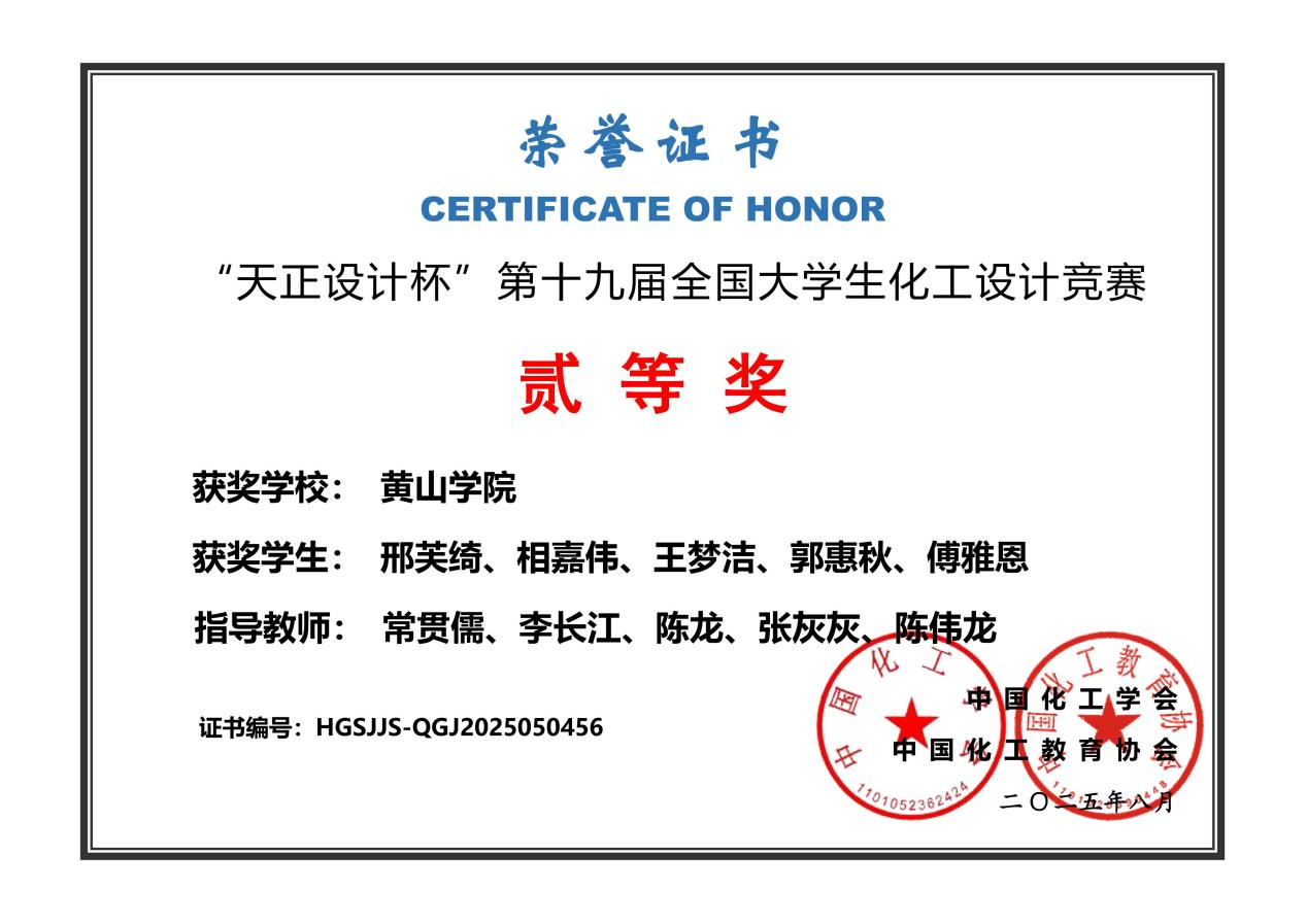 2025年8月11-17日,中国化工学会、中国化工教育协会主办,天津大学承办的“天正设计杯”第十九届全国大学生化工设计竞赛在天津圆满举行。全国共有479所高校的4337支队伍报名参加,参赛人数首次超2万人,参赛学校和报名队伍数量再创历史新高。365英国上市官方网站化学化工学院组建多支队伍报名参赛,最终二硫化亚砜团队(成员:邢芙绮、相嘉伟、王梦洁、郭惠秋、傅雅恩)荣获全国二等奖。