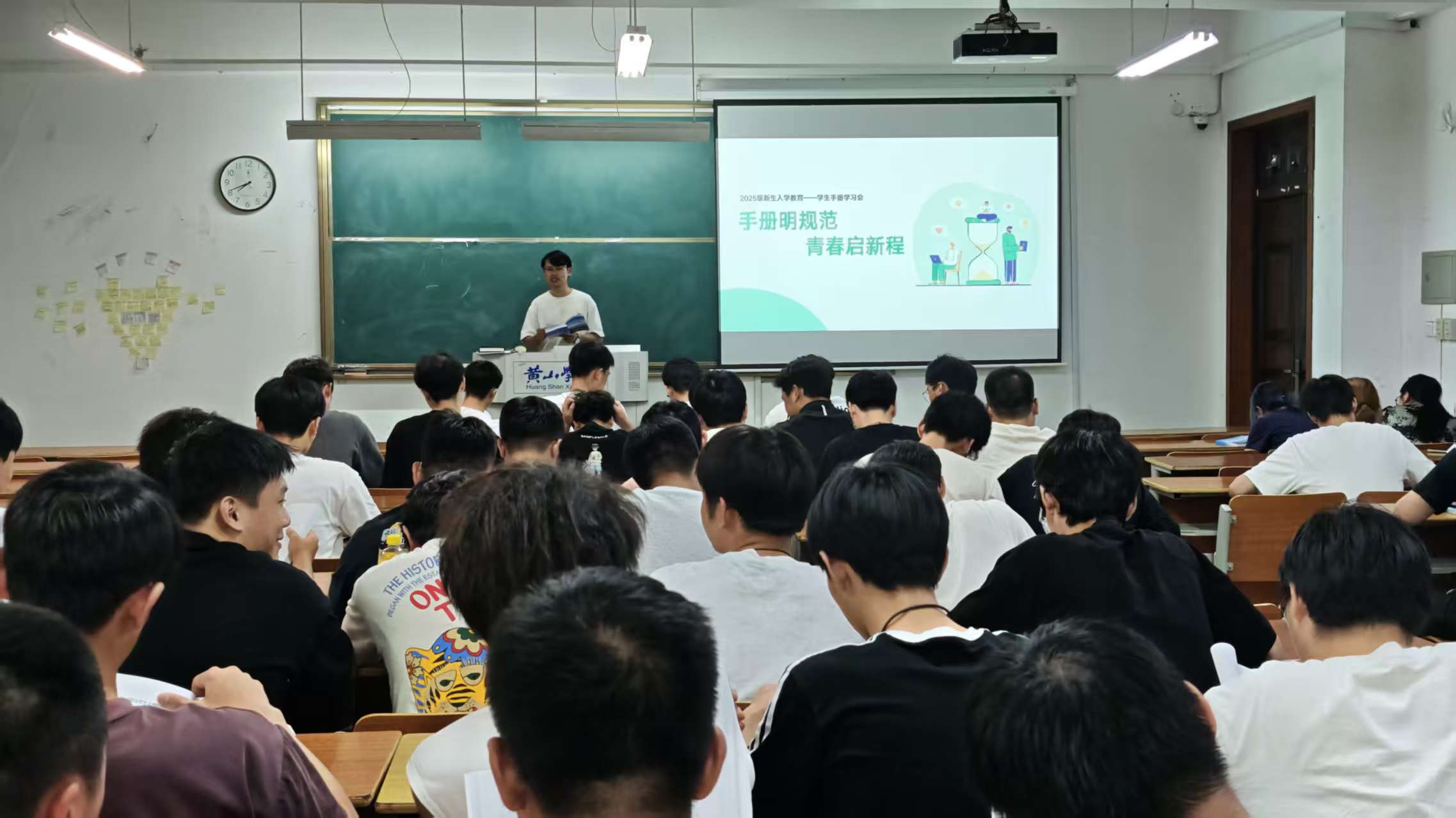 辅导员张浩胜以“启蒙筑初心,青春心向党”为主题,分别从“中国共产党的性质、最高理想与宗旨”“中国共产党党员的条件”“端正入党动机”以及“入党的程序和步骤”四个方面,为新生带来一场深刻而生动的入党启蒙教育。通过理论解读与实践引导,深化青年学子对五个认同的认知,强化感党恩、听党话、跟党走的思想自觉和行动自觉,培育新时代青年的家国情怀与使命担当。