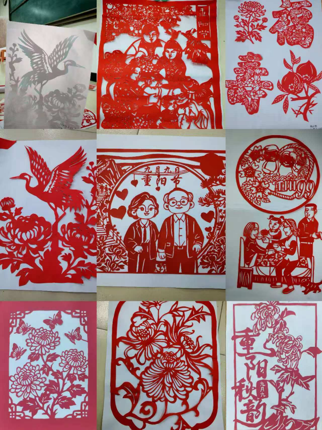 活动临近尾声,同学们纷纷展示自己的剪纸作品,鲜艳的红纸在阳光下格外耀眼,菊花、仙鹤、福字等图案不仅定格了重阳节的美好,更成为中外文化交融的生动见证。这个重阳,因指尖的创意而精彩,因文化的碰撞而温暖。