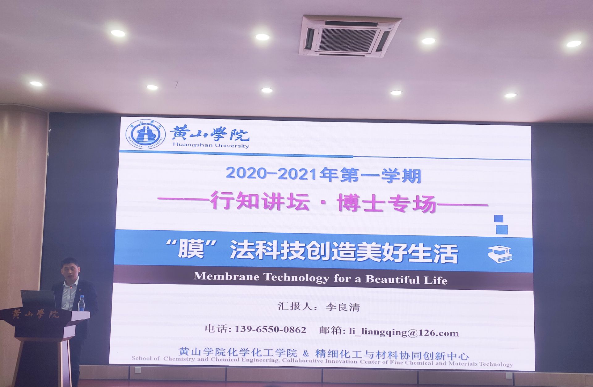 9月23日下午,化学化工学院副教授李良清在文端楼二楼报告厅举办题为《“膜”法科技创造美好生活》的学术讲座。化学化工学院党委副书记叶双峰主持会议,学院教师与学生350余人参加此次讲座。