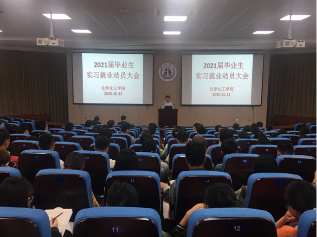 10月12日下午,化学化工学院在文端楼一楼报告厅召开2021届毕业生实习就业动员大会。学院领导、教研室主任及2021届全体毕业生参加了本次大会,会议由党委副书记叶双峰主持。