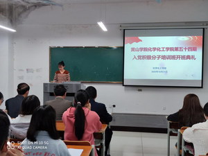 为深入学习贯彻习近平新时代中国特色社会主义思想,切实做好入党积极分子培训教育工作, 10月21日下午,化学化工学院党委在逸夫综合楼5212教室召开第54期入党积极分子开班仪式。校党委组织部副部长张爱民,化学化工学院党委书记程周旺、党委副书记叶双峰、学院各党支部书记、班主任及第54期入党积极分子学员参加本次开班仪式,开班仪式由叶双峰主持。