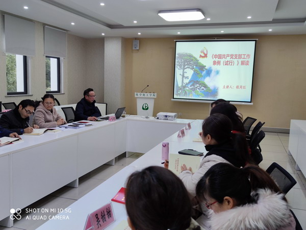 程周旺主要从《条例》制定的背景和意义、主要内容、贯彻落实《条例》的几个重要问题和新时代教育使命担当和党支部建设工作四个方面进行了深入细致的解读,其中就支部职责原则、支部组织设置、支部组织生活、支部领导保障等方面逐条重点解读。他强调《条例》的制定和实施为加强新时代党支部建设和抓好基层党建工作提供了基本遵循,全体党务工作者务必要学习领悟《条例》内容,查找支部工作中存在的不规范问题,按要求完成三会一课,严格按照程序发展党员,不断强化支部战斗力。