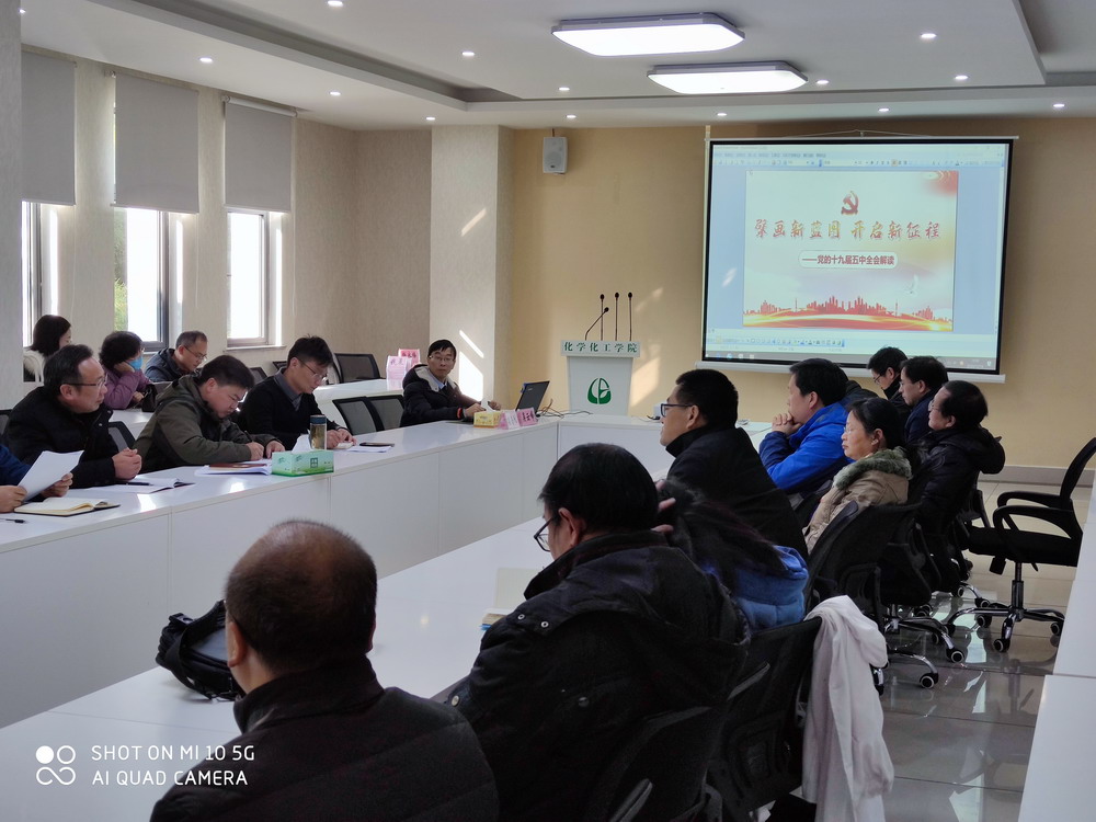 12月16日下午,化学化工学院在学院会议室逸夫综合楼5316举办党的十九届五中全会精神宣讲会,马克思主义学院吴云峰教授应邀作《擘话新蓝图 开启新征程——党的十九届五中全会解读》专题辅导报告,学院全体教工参加了报告会。会议由学院党委副书记叶双峰主持。