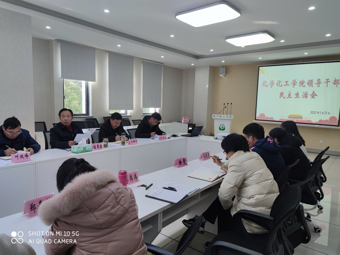 1月21日下午,化学化工学院在院会议室召开2020年度处级党员领导干部民主生活会。学院领导班子、党委委员、科级干部和支部书记参加会议,会议由学院党委书记程周旺主持。