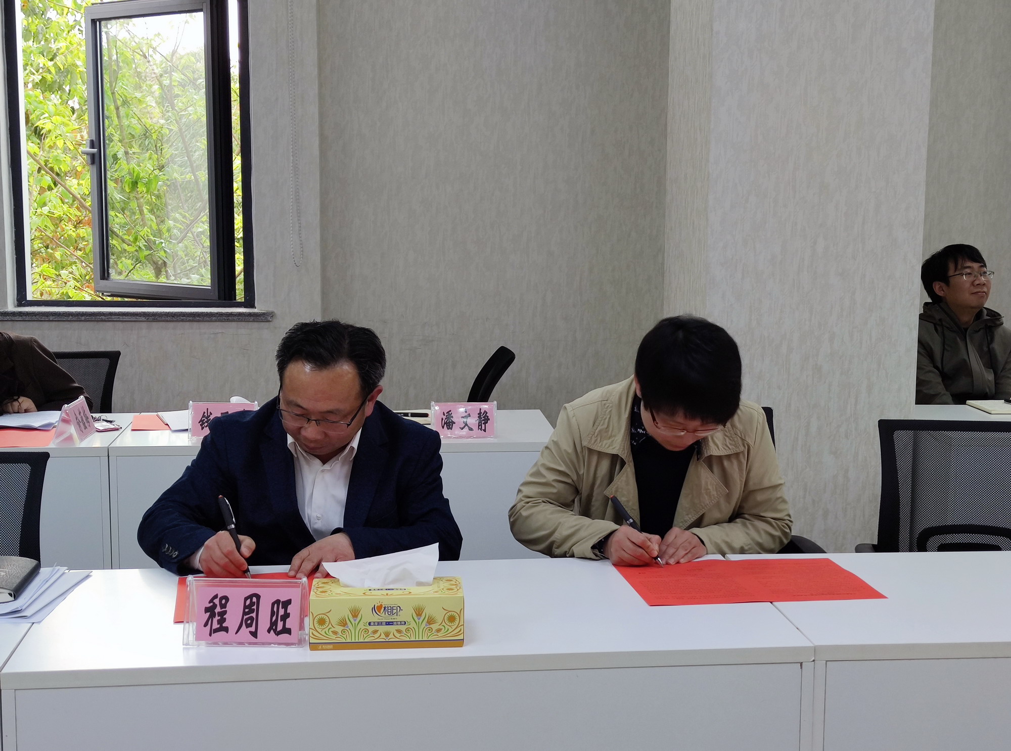 最后,程周旺分别与支部书记和教研室主任代表签订了党风廉政责任书和意识形态责任书。