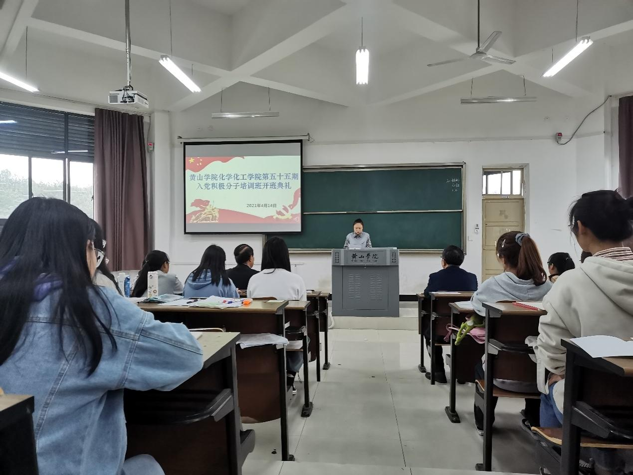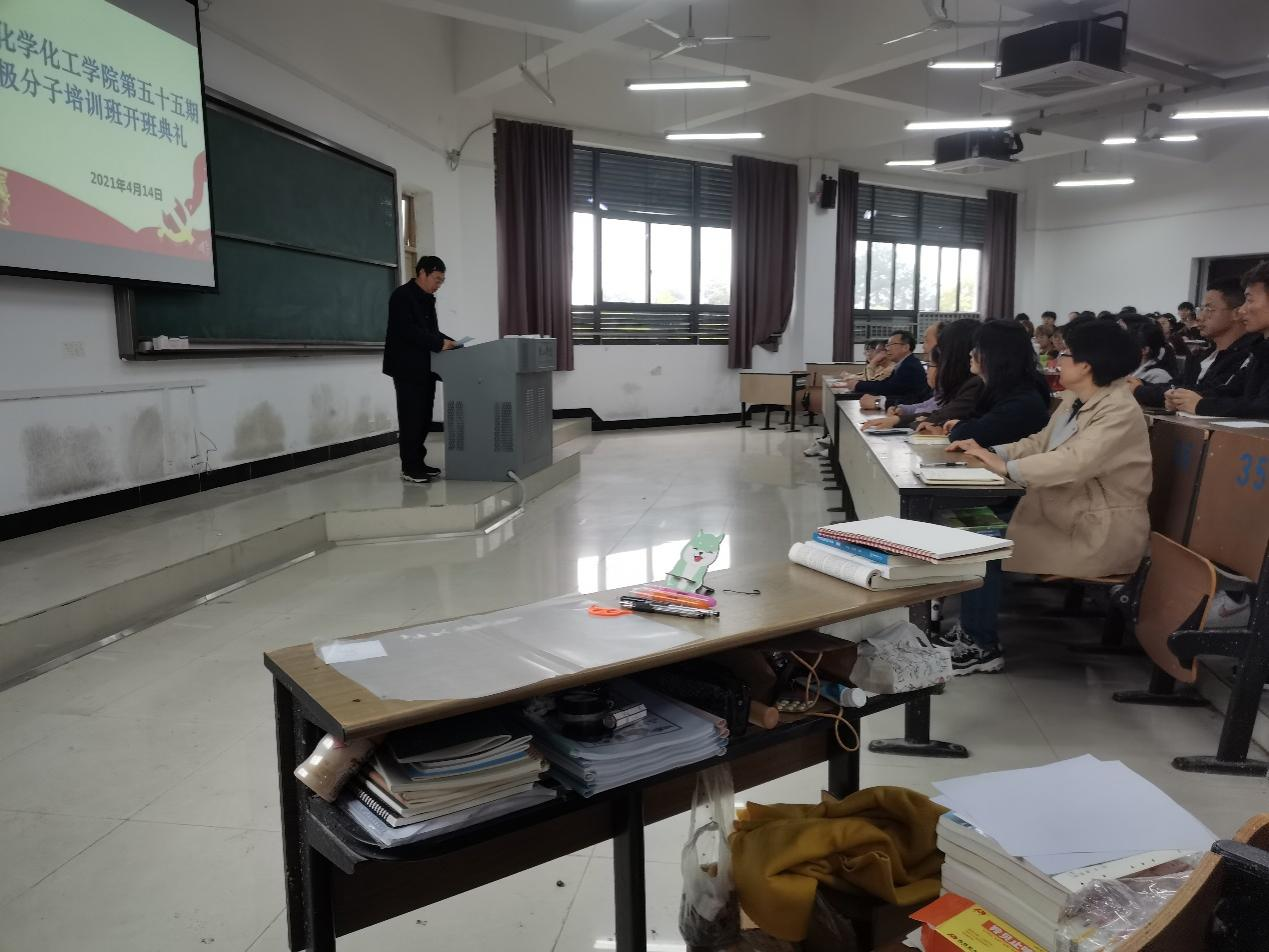 为深入学习贯彻习近平新时代中国特色社会主义思想,切实做好入党积极分子培训教育工作,4月14日下午, 化学化工学院党委在文渊楼1206教室召开第55期入党积极分子开班典礼。校党委组织部副部长张爱民,化学化工学院党委书记程周旺、党委副书记叶双峰、学院各党支部书记、党校的管理老师及55期培训班全体学员参加本次开班典礼,叶双峰主持开班典礼。