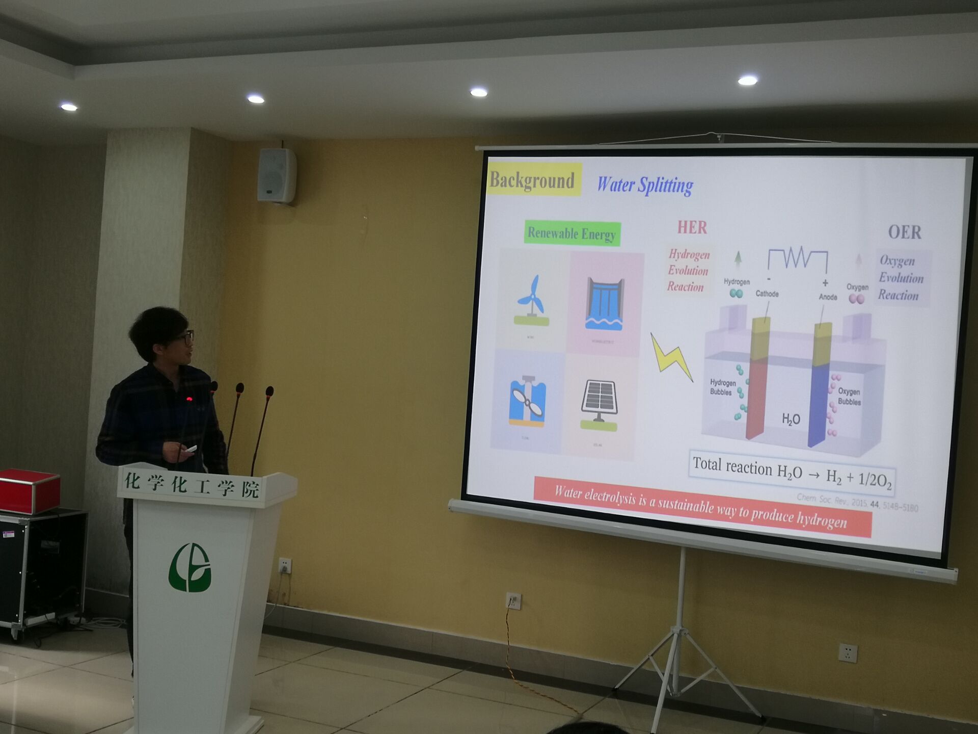 4月21日下午,安徽大学能源材料与化学研究所副所长、博士生导师遇鑫遥教授应邀来化学化工学院做了题为“等离子体法构筑非贵金属/金属氢氧化物异质结构HER电催化剂”学术讲座。