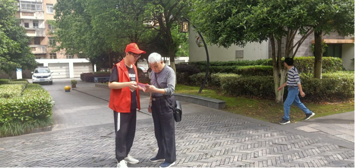 此次活动分为防灾知识宣传和消防安全演练两个部分。首先,志愿者为往来的居民发放宣传资料,,认真为居民讲解常见的家庭灾害隐患问题及自查方法,强调了掌握逃生技能的重要性,志愿者们耐心热情的态度赢得了社区居民的一致好评。随后志愿者同社区工作人员一起进行5.12消防实战演练及消防知识宣讲。