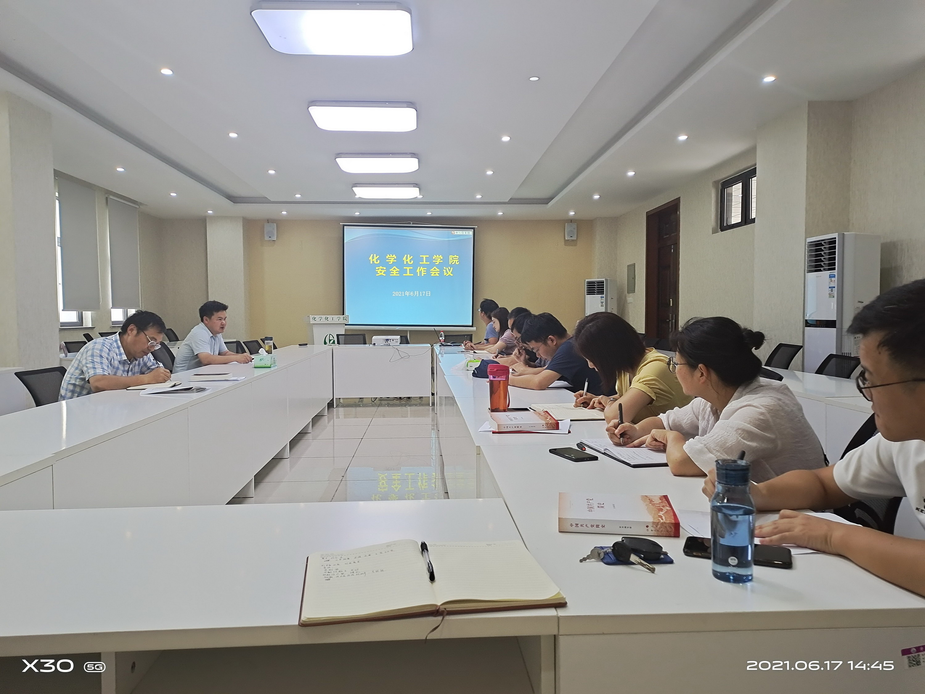 2021年6月17日下午,化学化工学院在综合逸夫楼5316召开安全工作会议,院长方辉平、党委副书记叶双峰、学院党委委员、各教研室主任和实验实训中心全体人员参加,会议由方辉平主持。
