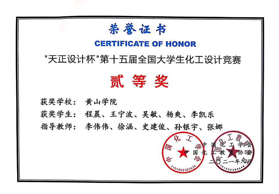 全国大学生化工设计竞赛是安徽省教育厅认定的大学生学科和技能竞赛国家级B类赛事,已经成为全国高校化工艺领域最有影响的学生赛事和课外实践活动之一。今年3月本次赛事启动以来,学校领导和教务处给予高度重视,化学化工学院认真筹备、精心组织了5支队伍参加化工设计大赛。在新冠疫情防控常态化的情况下,学校相关部门通力合作,指导教师和团队成员齐心协力,克服了许多不确定性和困难,不断完善参赛作品,最终取得了优异成绩,为学校赢得了荣誉。
