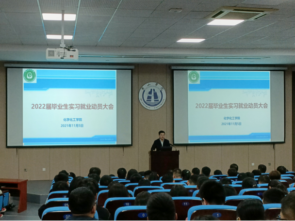 为推动2022届毕业生实习就业工作顺利开展,11月5日下午,化学化工学院在文端楼一楼报告厅召开2022届毕业生实习就业动员大会。该院党政领导、教研室主任、毕业班辅导员、实习指导教师、全体2022届毕业生参加了本次大会。