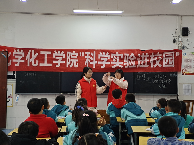为推进党史学习教育走深走实,扎实推进“我为群众办实事”,化学化工学院于12月24日前往屯溪江南实验小学开展科学实验进校园活动。