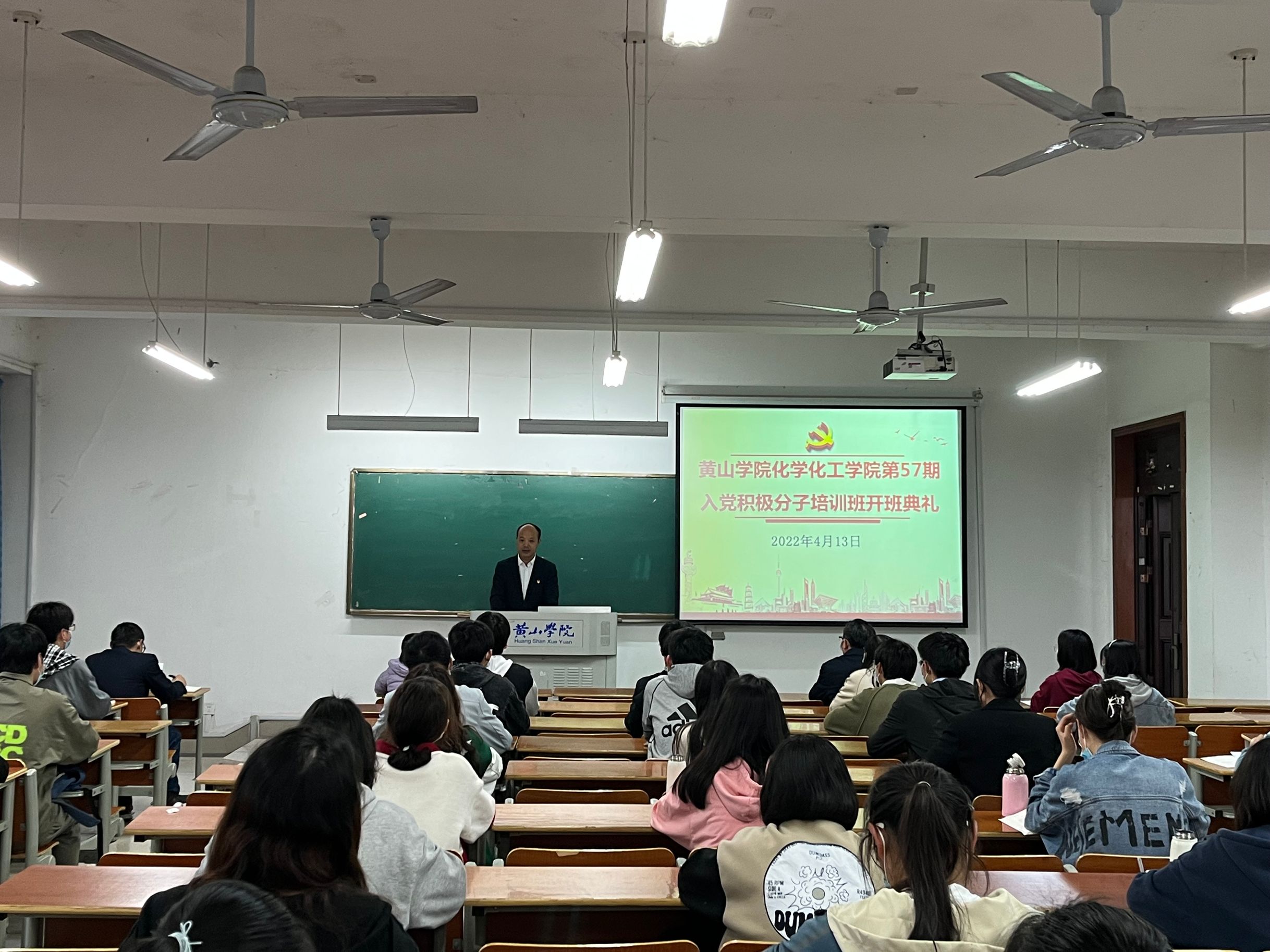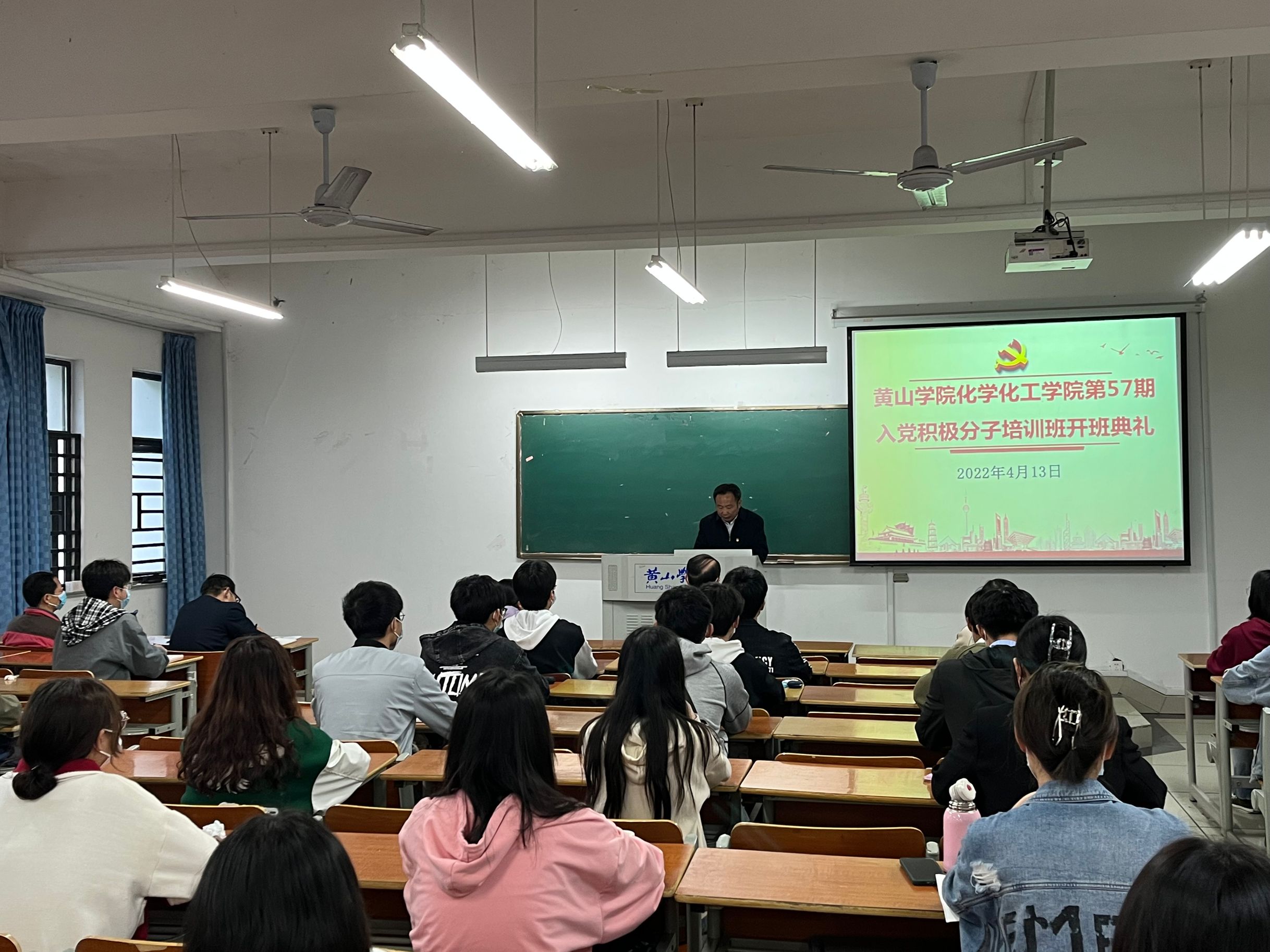 为更好的加深入党积极分子对党的认识,端正入党动机,化学化工学院于逸夫综合楼5106教室举行57期入党积极分子培训班开班典礼。校党委组织部副部长张爱民、化学化工学院党委书记程周旺、学院各党支部书记、党校的管理老师及57期培训班全体学员参加本次开班典礼,叶双峰主持开班典礼。
