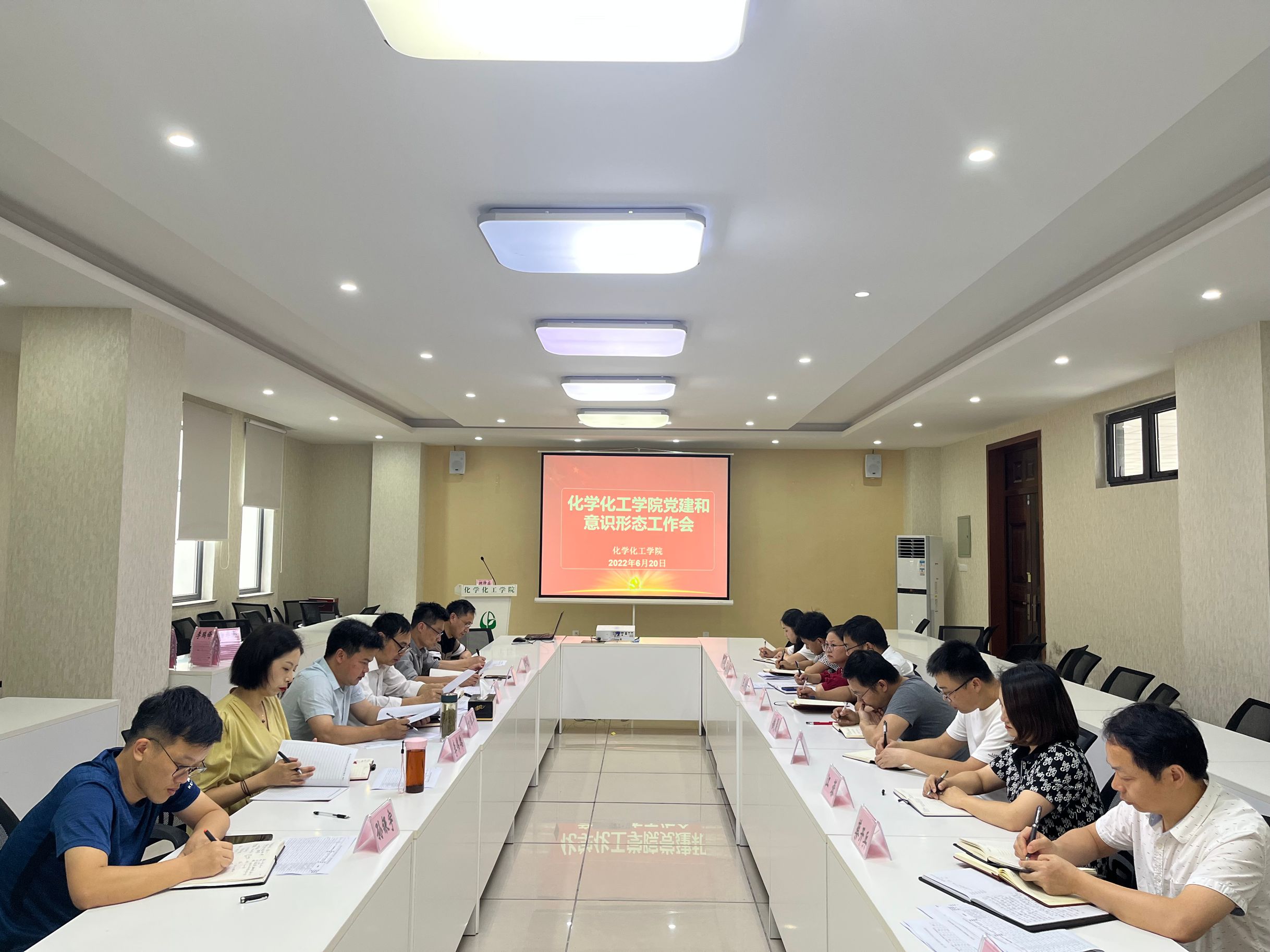 为全面落实新时代党的建设总要求,推动学院党建工作高质量发展,6月20日下午,化学化工学院党委于逸夫综合楼5316会议室召开党建和意识形态工作会议,学院党委委员、科级干部、全体教研室主任、各党支部书记、专兼职辅导员参加会议,会议由党委副书记叶双峰主持。