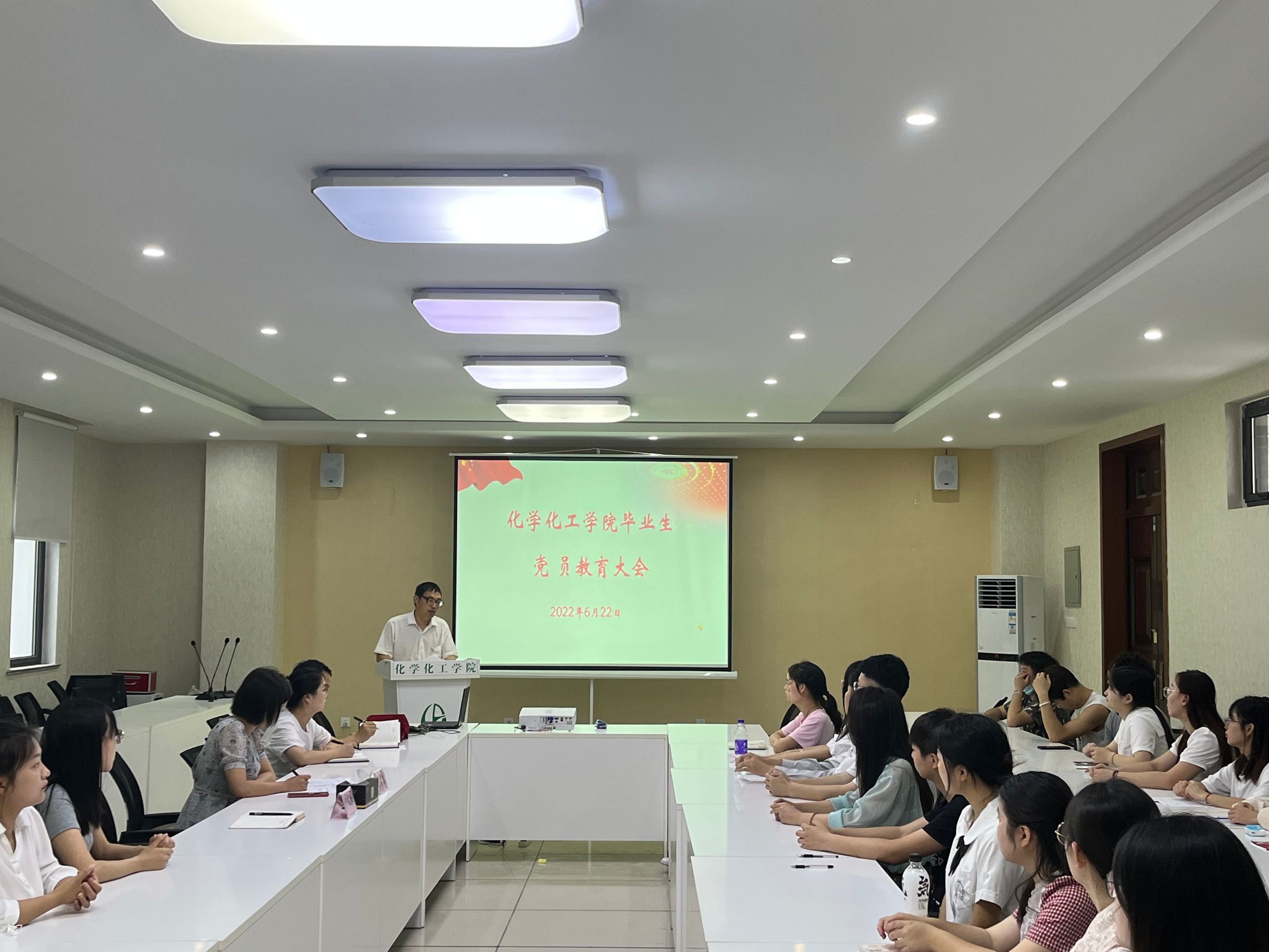 6月22日上午,化学化工学院在5316召开2022届毕业生党员教育大会。会议由学院党委副书记李伟伟主持,学院党委副书记叶双峰、支部书记以及2022届全体毕业生党员参加会议。