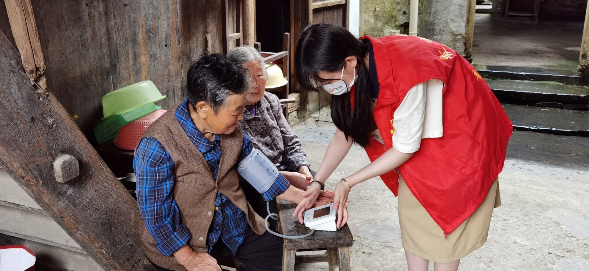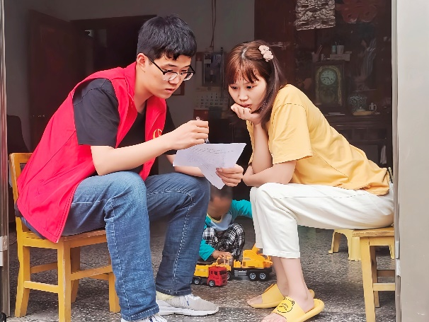在溪头镇,志愿者们无惧烈日暴雨,围绕乡村振兴、基层治理、疫情防控等主题开展调研,先后走访了当地80余户村民,开展了系列社会实践活动。汪满田村、大谷运村是溪头镇较偏远的山村,外出务工人员较多,村中多为留守老人和留守儿童。志愿者们带上血压计,挨家挨户上门为老人测量血压,提醒老人平时多多加强锻炼,注意健康饮食,发现头晕不适等症状要及时到医院就医。遇到留守儿童,志愿者们陪伴他们讲故事、做游戏,为他们送去快乐与温暖。