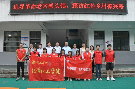 近日,化学化工学院“追寻革命老区溪头镇,探访红色乡村振兴路”暑期社会实践活动圆满结束。 校党委书记汪枫一行看望并指导三下乡活动,团委书记郑春梅、专业老师张娜全程参与并指导活动开展。本次三下乡活动围绕社会调研、安全用药、疫情防控、科普宣传等内容扎实开展社会实践,在卫生、科技、安全等各方面助力乡村振兴,活动受到当地政府的大力支持和群众百姓的充分肯定。