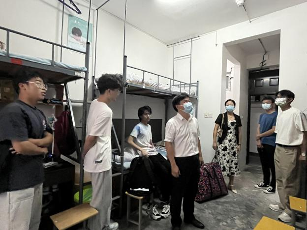 当天下午,化学化工学院党政领导、辅导员一行走访宿舍并慰问了2022级新生。走访过程中,领导老师关切地询问了新生们的的家庭情况、生活环境的适应情况以及对专业的了解情况等,并耐心解答了同学们的疑惑与问题,鼓励他们尽快融入班级、融入学院、学校大家庭。