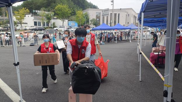 今年迎新与往年相比又进行了一定程度的创新。由于疫情原因,今年新生家长不能进入校园,我院教授、博士们争先报名校门口迎新志愿者,帮助新生搬运行李,解答新生和家长疑问。学院为每位新生定制了专属校园卡套,新生在领取校园卡的第一时间即可随身携带。