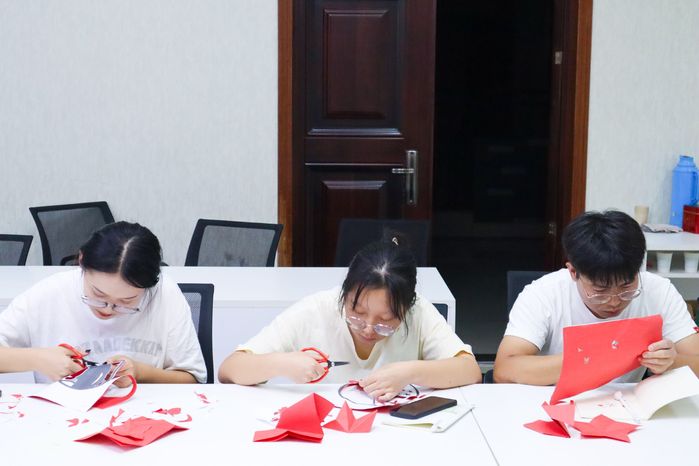 本次党日活动邀请校剪纸协会会长邓硕为党员讲解剪纸艺术。活动中,邓硕同学为支部党员和入党积极分子细致讲解了剪纸的历史渊源、特点和技巧,并现场演示剪纸方法。全体党员仔细观看,实际操作,经过折纸、翻纸、临摹、剪纸等工序,从简单的直线再到弧线,一幅幅生动的作品展现出来。