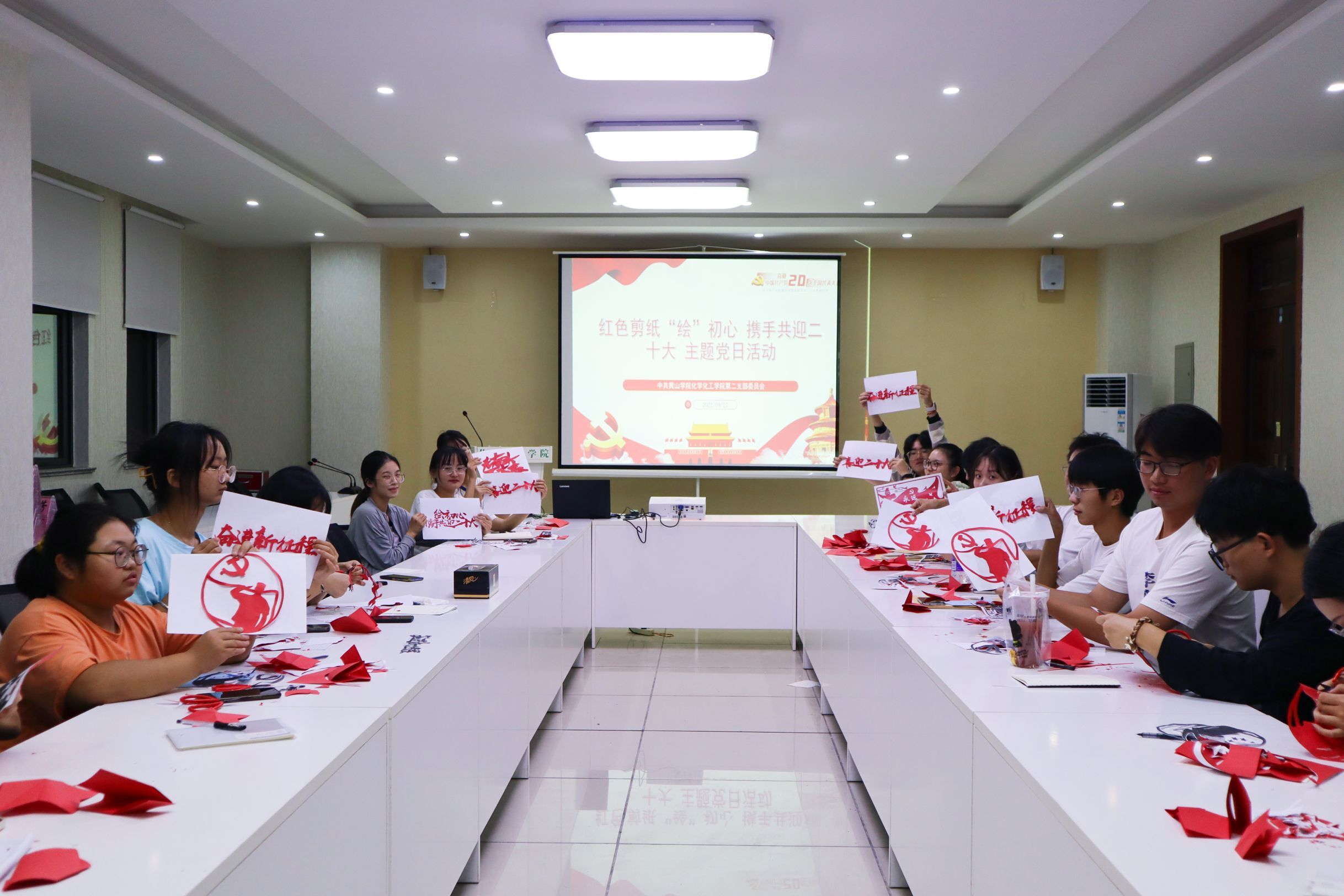 为教育引导青年学生了解党的光辉历史、感悟党的初心使命、传承党的红色基因,以实际行动迎接党的二十大胜利召开,9月27日晚,化学化工学院第二党支部开展了“红色剪纸绘初心 携手共迎二十大”主题党日活动。