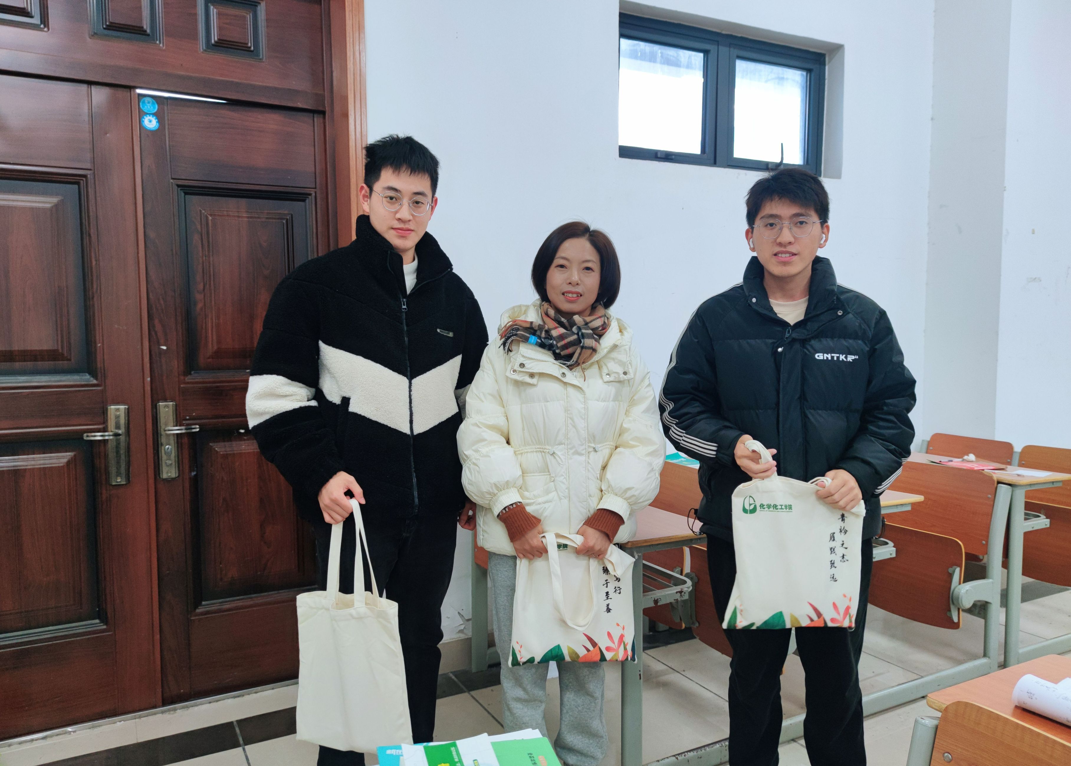 12月1日,化学化工学院开展考研送温暖活动。学院党委书记叶双峰、党委副书记李伟伟带领毕业班辅导员走访考研教室。