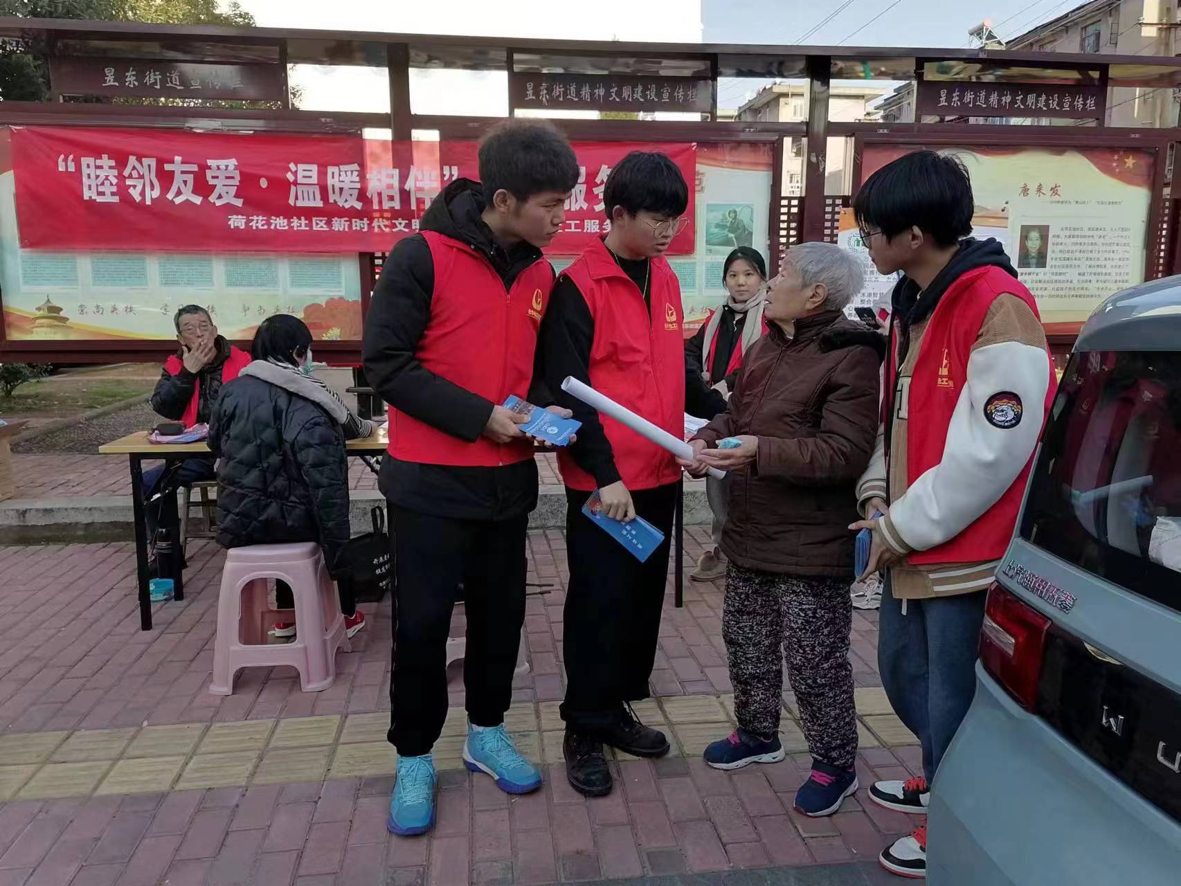 活动中,志愿者结合辖区实际情况,在荷花池社区开展的便民活动中,为高龄、独居、空巢老人,细心地宣传助餐点服务的内容,包括助餐服务对象、就餐时间、地点,同时耐心地解答老人们提出的相关问题。