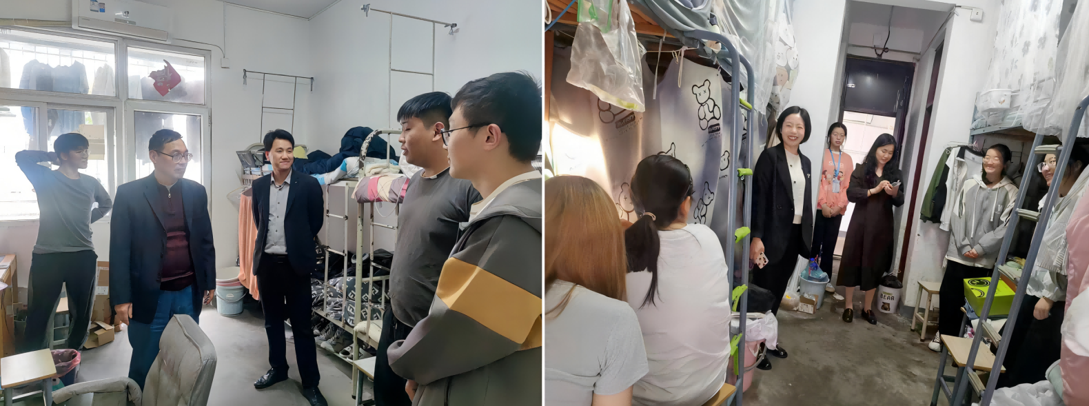 4月27日下午,化学化工学院开展学生宿舍安全卫生检查,学院领导及辅导员根据学生宿舍分布情况,分为二组同时走访学生宿舍,对宿舍安全隐患、寝室卫生进行专项检查。经检查,学生宿舍整体状况良好,对于宿舍卫生差、有安全隐患的情况,及时督导学生整改。同时,学院领导老师与学生亲切交流,了解学生思想动态情况,勉励同学们勤奋学习,做好学习和就业规划,营造良好的学习氛围。