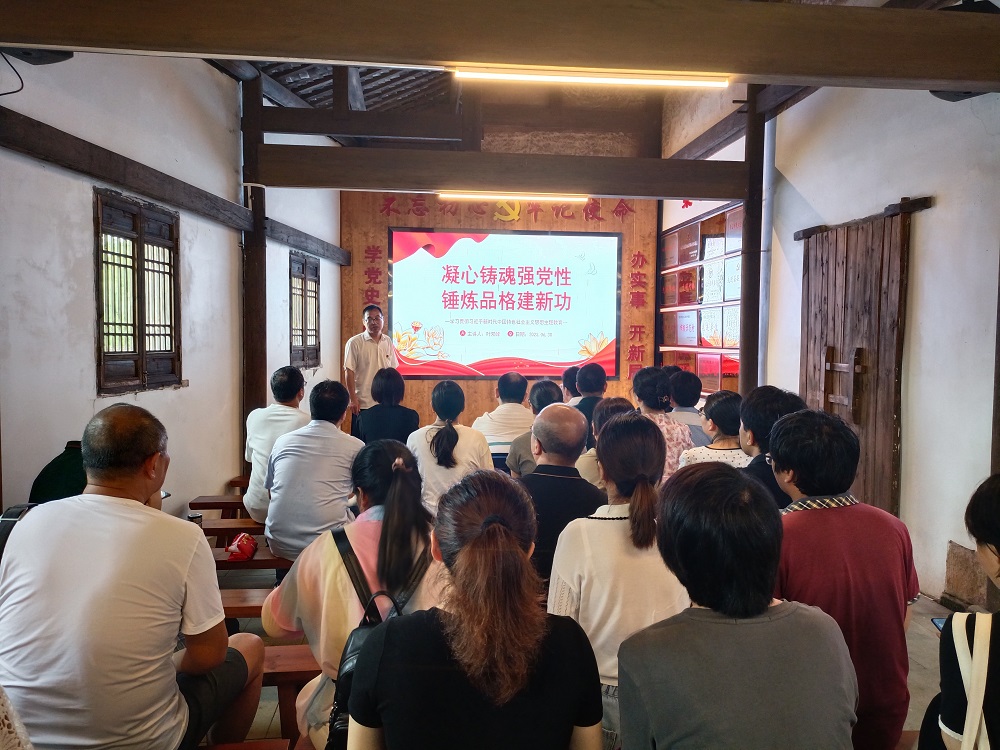 在琶村党性教育基地,化工院一行参观了了新四军二支队驻地旧址、新四军二支队琶塘纪念馆、琶村村史馆等,聆听了讲解员讲述新四军二支队抗战的英雄事迹,加深了对中国共产党的初心和使命的理解。活动中,学院党委书记叶双峰讲了题为《凝心铸魂强党性锤炼品格建新功》的专题党课。他要求全院教工党员一要深刻认识开展主题教育的重大意义,准确把握主题教育的目标要求,认认真真读原著学原文悟原理,在学思悟践中不断夯实拥护“两个确立”、做到“两个维护”的思想根基,切实做到以学铸魂、以学增智、以学正风、以学促干,推动学院事业高质量发展;二要胸怀“国之大者”,牢记为党育人、为国育才初心使命;三要守初心廉洁从教,担使命教书育人。