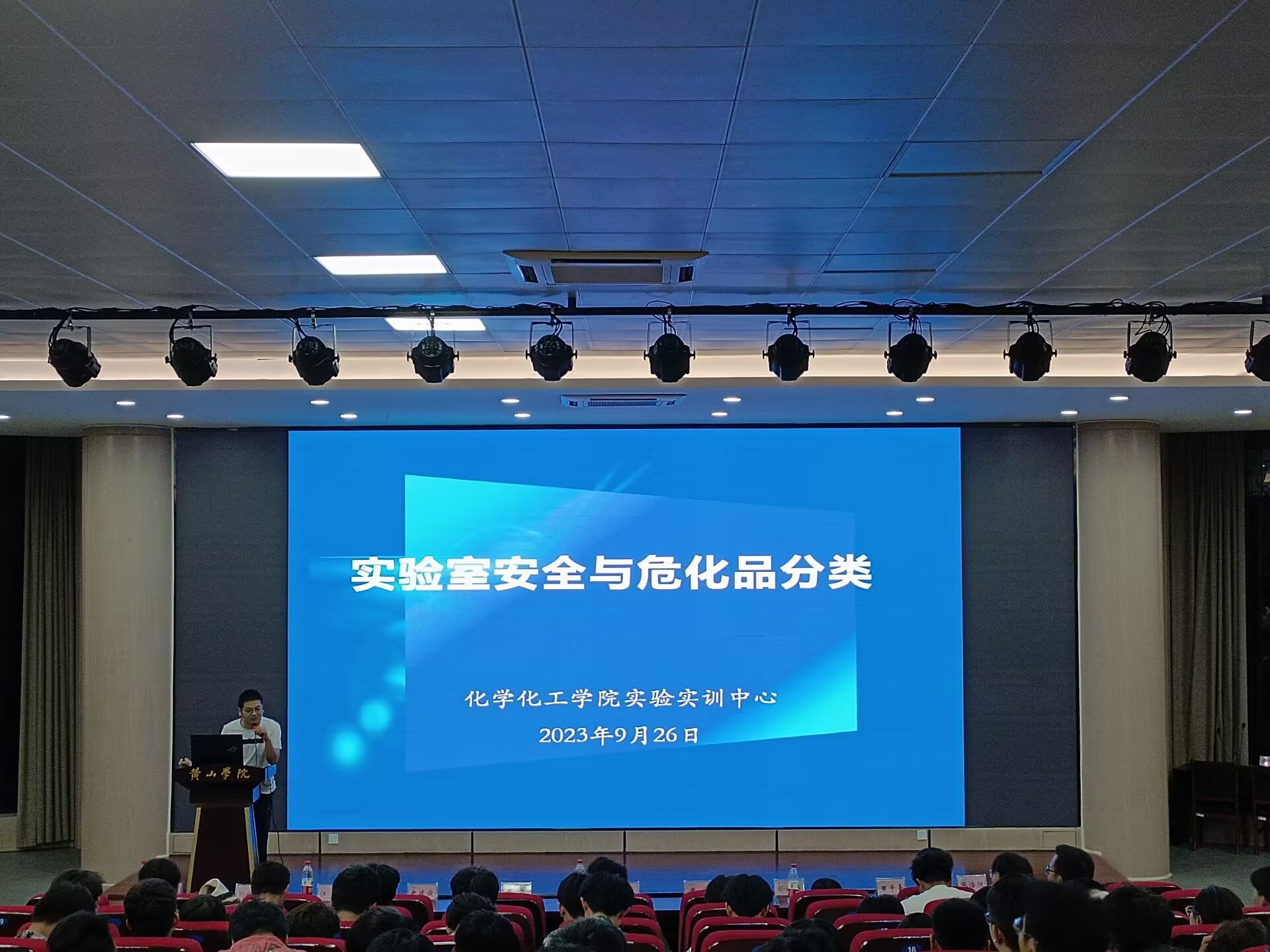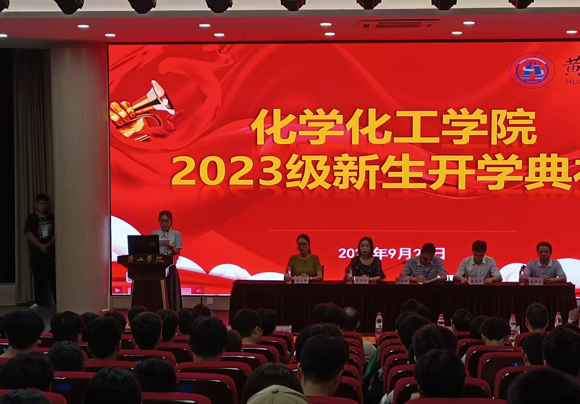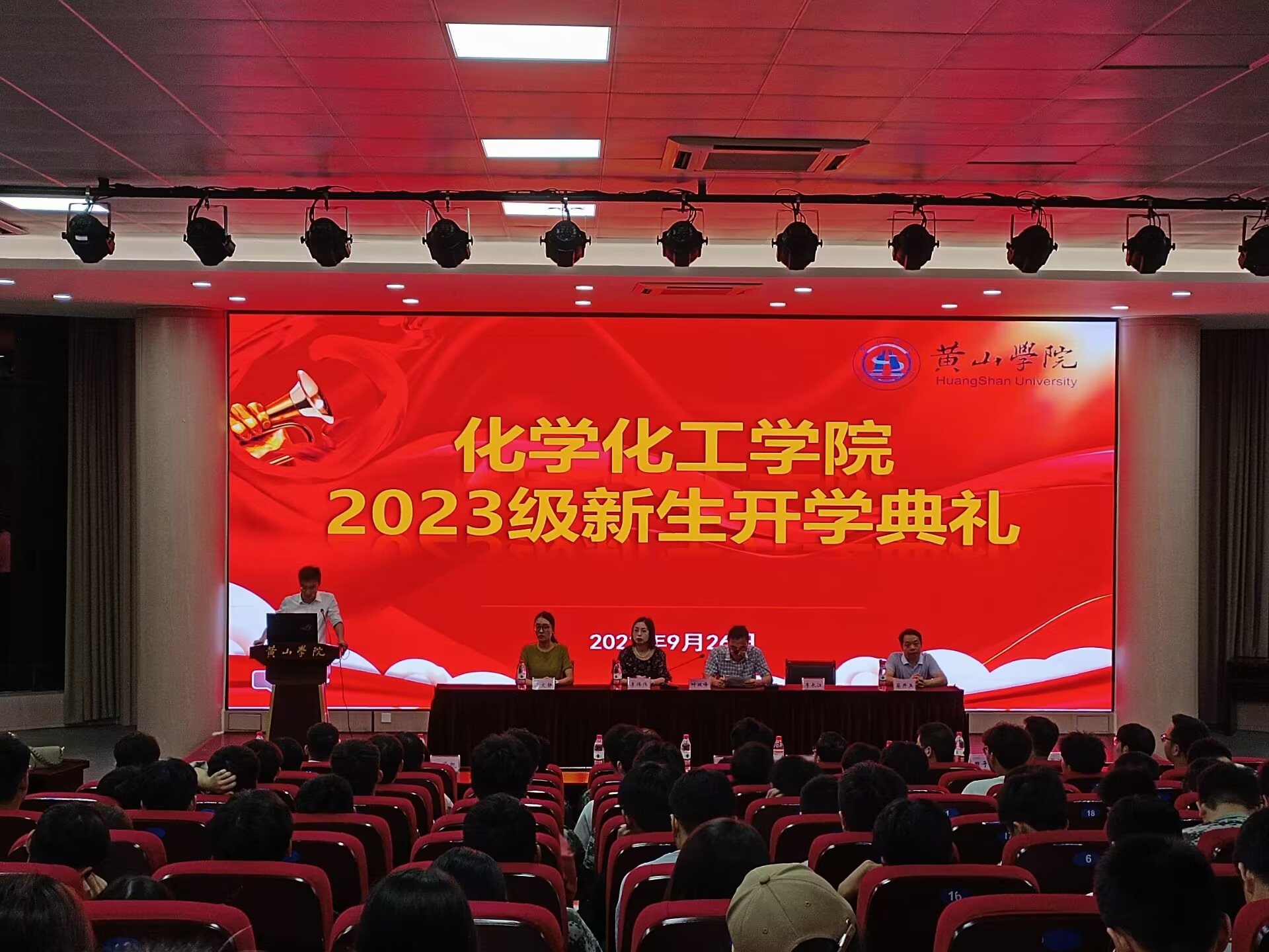 9月26日晚,化学化工学院在文端楼二楼报告厅举办2023级新生开学典礼暨安全教育大会。学院领导班子成员、行政管理人员、教研室主任、23级辅导员及全体新生参加典礼,化学化工学院党委书记叶双峰主持典礼。