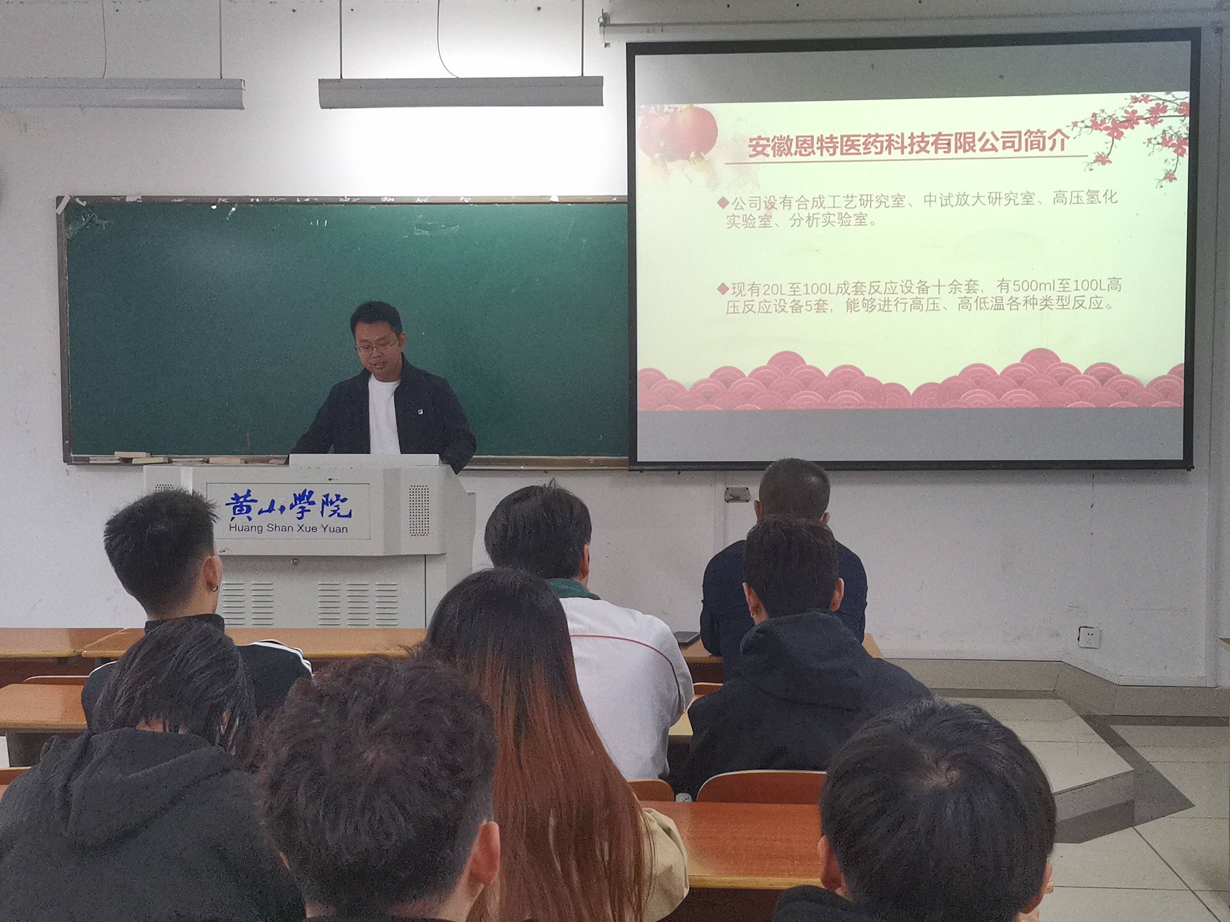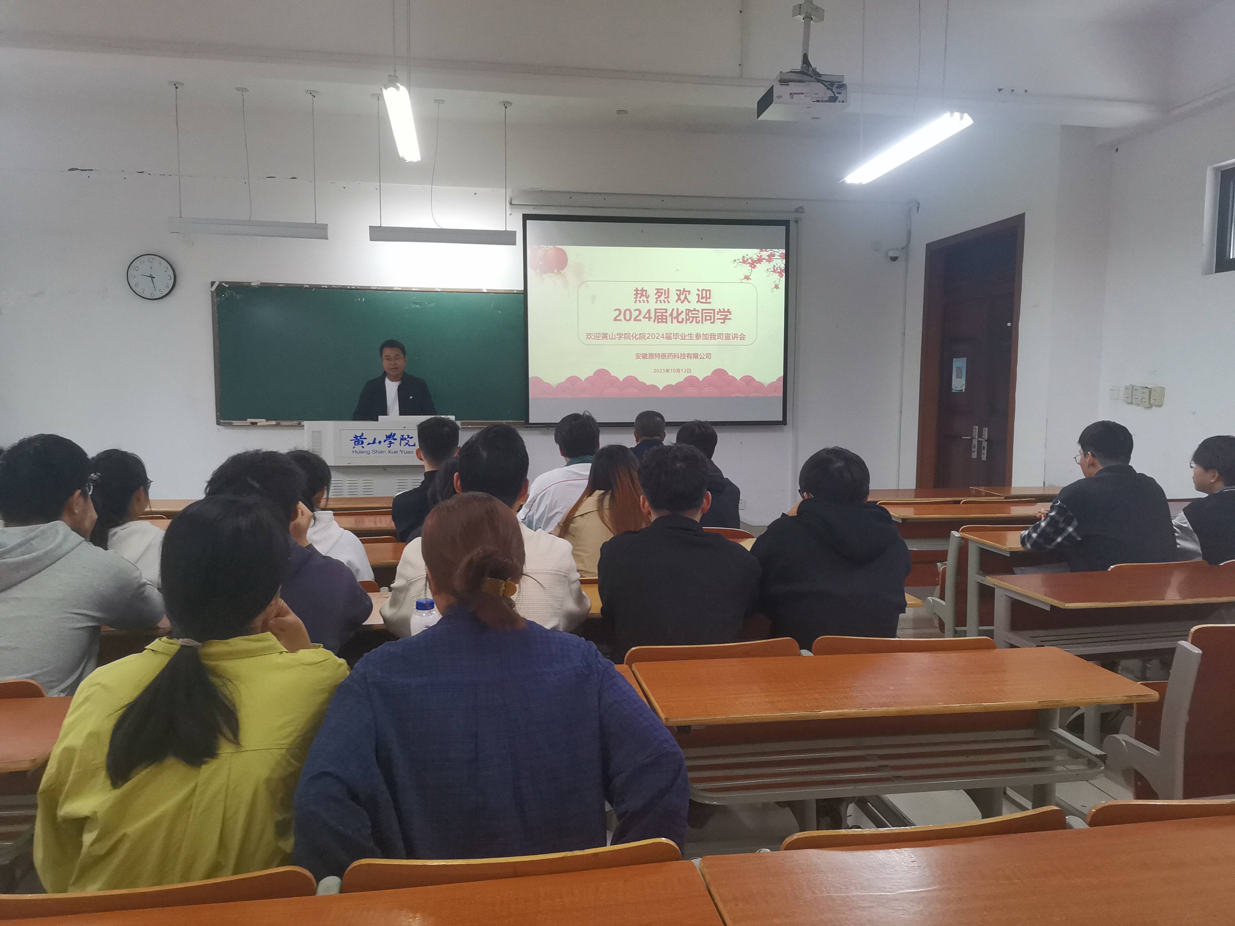 为进一步做好2024届毕业生就业工作,10月14日上午,化学化工学院在逸夫综合楼5105教室举办安徽恩特医药科技有限公司进校招聘宣讲会,2024届毕业生积极参加。
