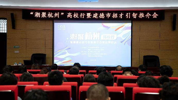 刘国金一行从区位、产业、交通等维度向师生推荐了建德山水之美、人文底蕴,详细介绍了建德市大学生就业创业政策。现场还有三家企业作了精彩宣讲,气氛活跃,同学们踊跃发言,将职业规划与企业进行充分沟通,对建德人才政策进行深入的了解。