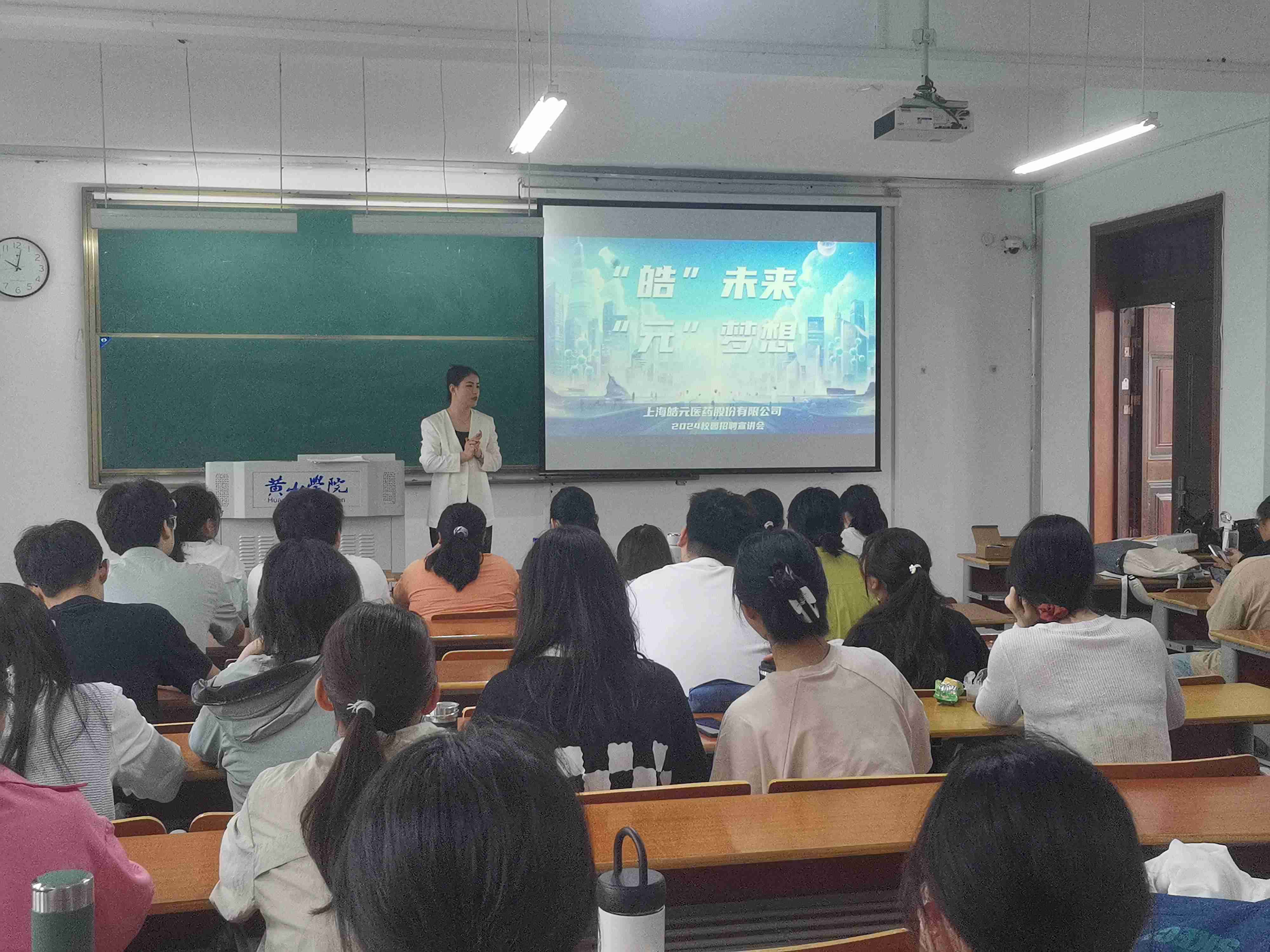 上海皓元医药股份有限公司是一家科创板上市企业,企业主要业务涵盖药物研发到原料药和医药中间体、制剂的规模化生产以及技术服务。旭阳集团总部位于安徽省合肥市,拥有内蒙古通辽市,安徽合肥、六安、铜陵四大生产基地,是全球金属粉体及浆料行业龙头企业。宣讲会现场,两家企业先后以PPT的形式,从企业介绍、福利待遇、岗位需求及用人标准等多方面进行宣讲,帮助学生进一步了解工作模式,提前熟悉职场岗位要求,确定未来职业生涯规划。