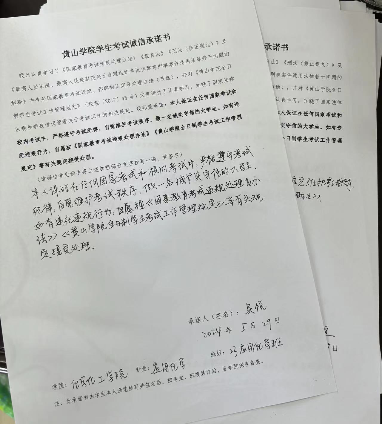化学化工学院高度重视学生诚信教育和考风学风建设。今后,学院将继续加强对诚信考试的宣传和引导,将诚信理念融入教育教学的方方面面,为学生营造一个更加公平、公正、和谐的学习和成长环境。