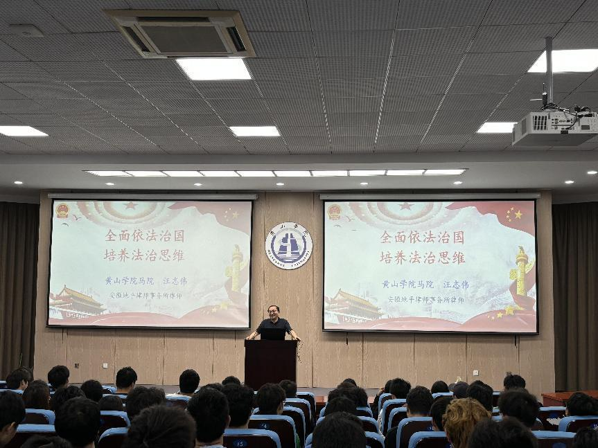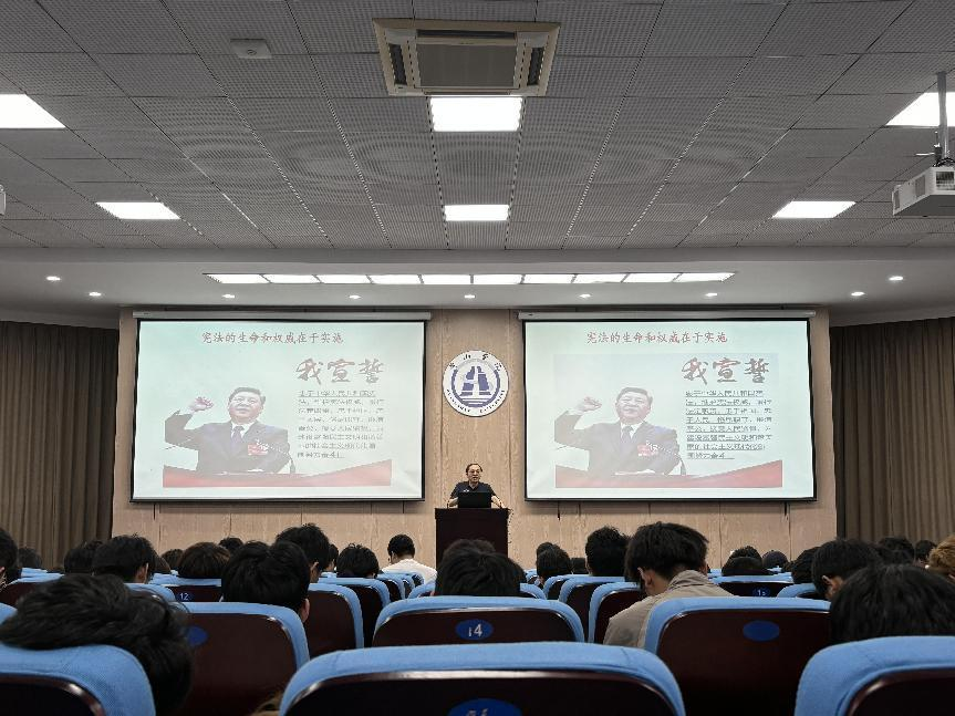 讲座中,汪志伟围绕党的二十大精神和习近平法治思想,阐述全面依法治国的宏伟目标、重要任务和意义,全面阐释“法”的含义,以及辨析了“法治与人治”和“法治与法制”的两组概念,加深了学生对法的理解。其通过联系日常生活中的实际案例,以案释法,以法论事,为同学们讲述了违法犯罪的现状、特点、成因等,告诫同学们要引以为戒,培养法治思维,提高法律意识。