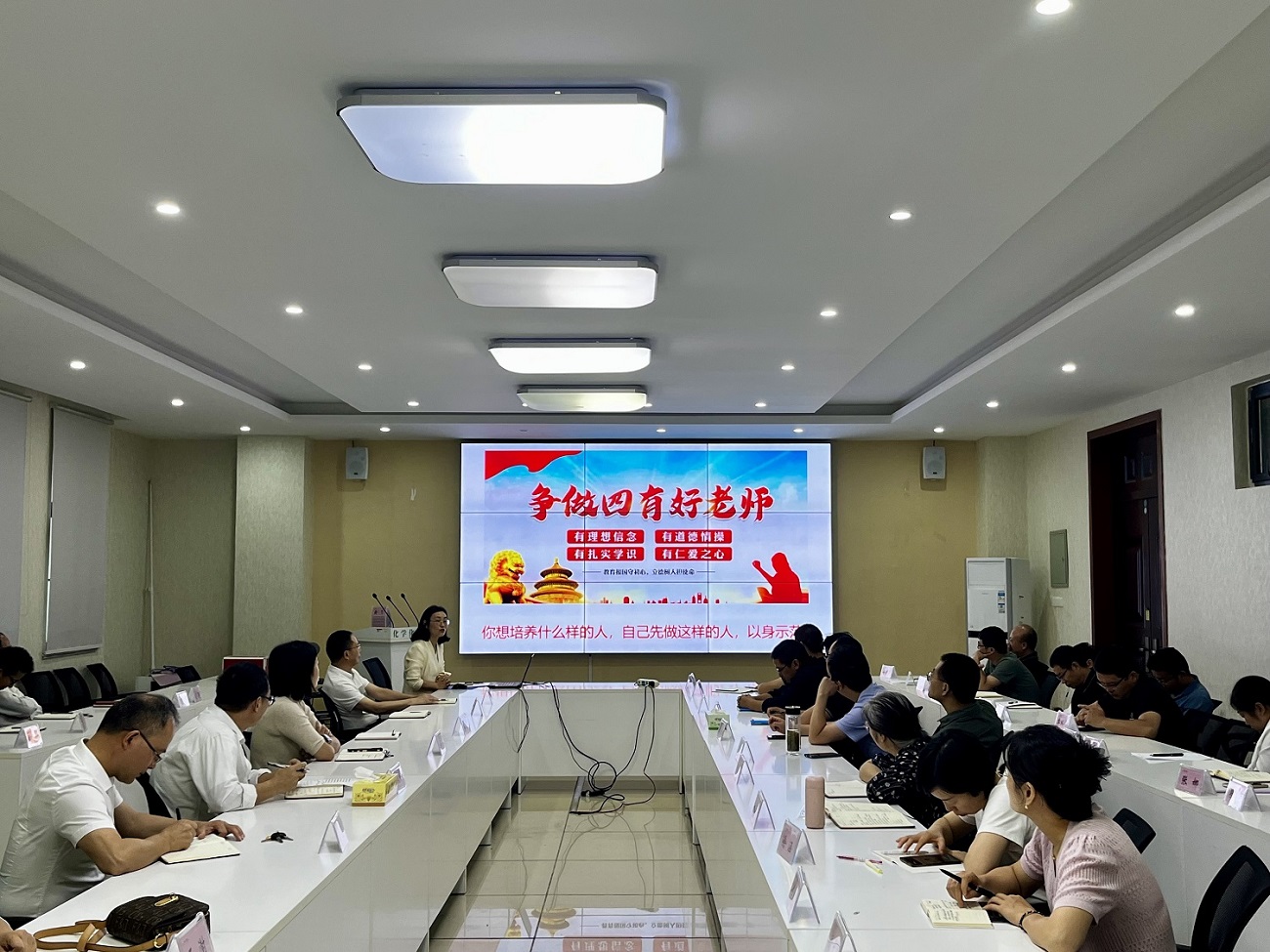 为全面落实立德树人根本任务,进一步加强师德师风建设,提升教师职业道德素养,6月26日下午,化学化工学院开展了以“弘扬教育家精神 争做“四有”好老师”为主题的讲座。本次讲座由365英国上市官方网站师德师风监督员杨永梅老师主讲,学院全体教师参加。