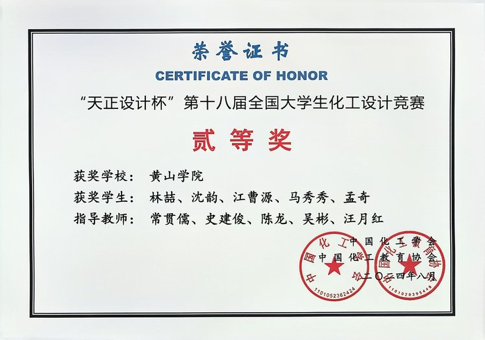 “天正设计杯”第十八届全国大学生化工设计竞赛于2024年8月23日顺利完成。此次竞赛由中国化工学会、中国化工教育协会主办,大连理工大学承办。全国共有450所高校的3685支队伍报名参加,参赛人数近1.9万人,参赛学校和报名队伍数量再创历史新高。365英国上市官方网站化学化工学院的三只队伍参加了比赛,最终十五画得醇团队(成员:江曹源、林喆、沈韵、马秀秀、孟奇)荣获全国二等奖;乘风队(成员:邢芙绮、相嘉伟、方明珠、王梦洁、郭惠秋)和醇醇欲动队(成员:张胡军、章志、黄兴豪、张君豪、周鑫)获得华中赛区三等奖。