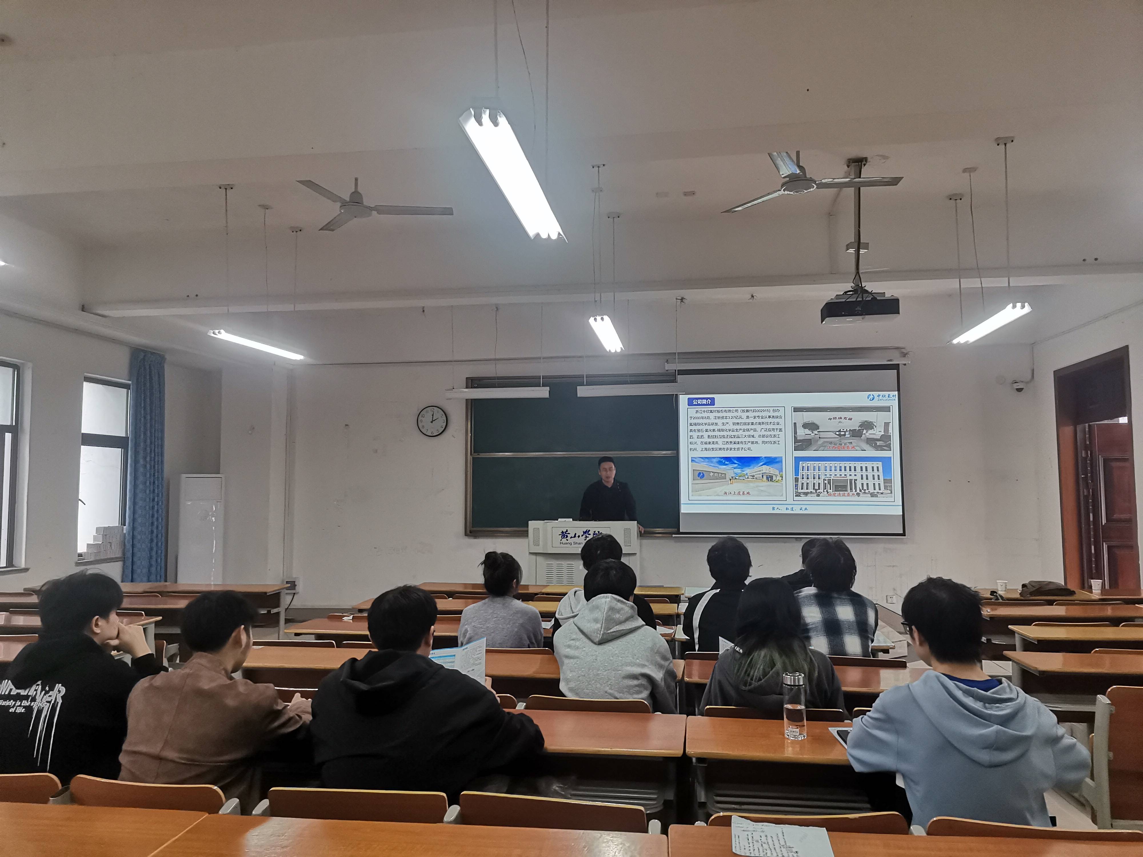 为进一步促进学生高质量就业,化学化工学院为2025届毕业生求职和用人单位招聘搭建平台,促进学生与企业之间的双向选择,10月28日,我院邀请浙江中欣氟材股份有限公司进校举办专场招聘宣讲会。