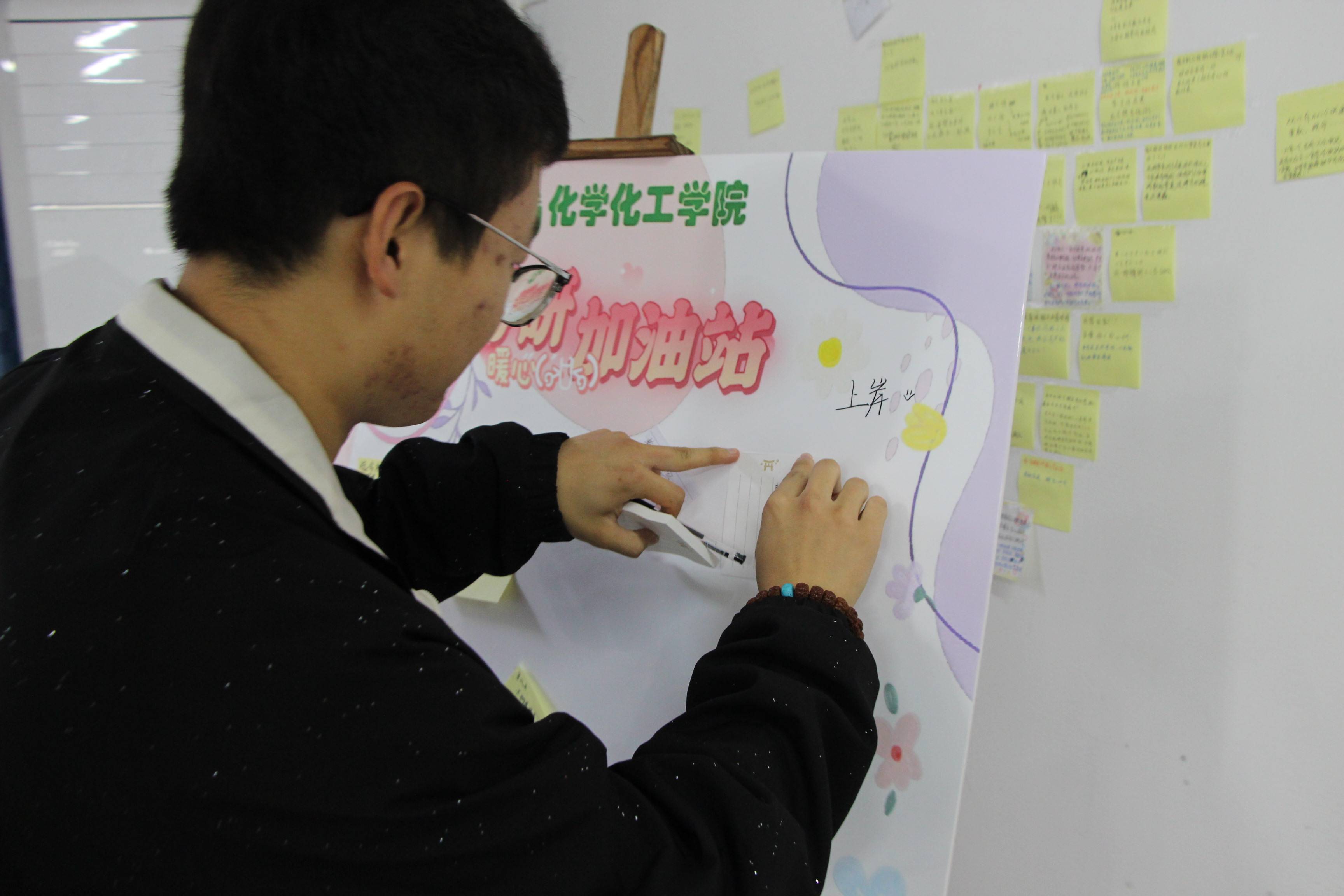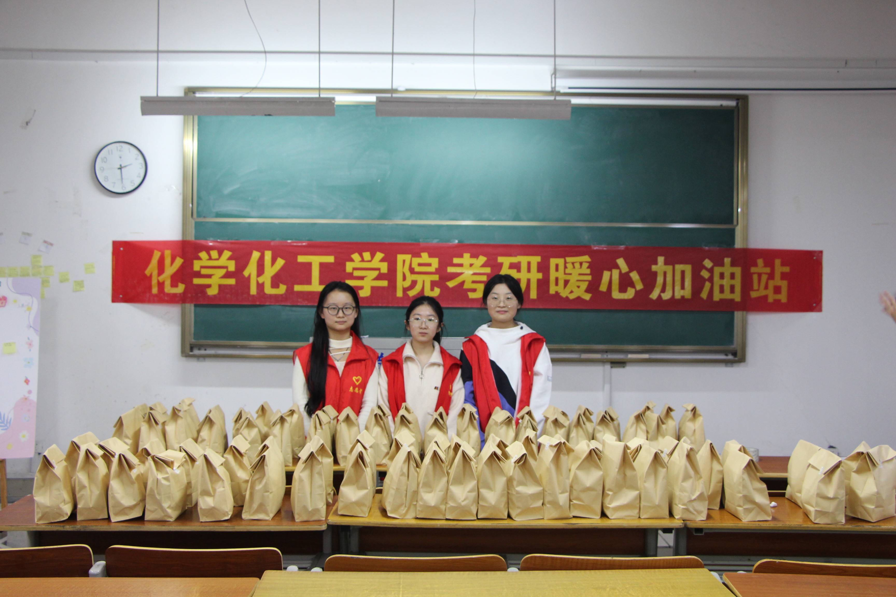 2025年全国硕士研究生考试冲刺的关键时期,为表达学院对考研学子的关心关怀,帮助学生舒缓备考压力,增强学子迎考信心,化学化工学院于11月16日在逸夫综合楼5106教室举办了考研送温暖慰问活动,学院团委书记陈伟龙、学生会功能性团支部的志愿者们为考研学子发放“加油包”并送上诚挚祝福。