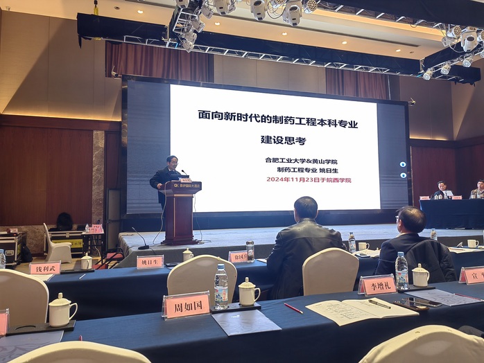 本次会议旨在展示制药工程与技术领域的最新研发进展及产业化成果,提升安徽省省生物医药产业绿色发展水平,总结、探讨制药人才培养新成果、新趋势,助力安徽省生物医药产业发展。多位国内外知名学者、相关高校和科研院所研究人员、广大青年科技工作者、高校研究生、企业家、投资者莅临会议并参与研讨。教育部药学类教指委员会委员、制药工程分委会副主任委员,我院外聘教授姚日生做题为“面向新时代的制药工程专业建设思考”的主旨报告;孙光映博士作题为“药物标准样品规模制备方法学研究及其在教学改革中的应用”的交流报告。