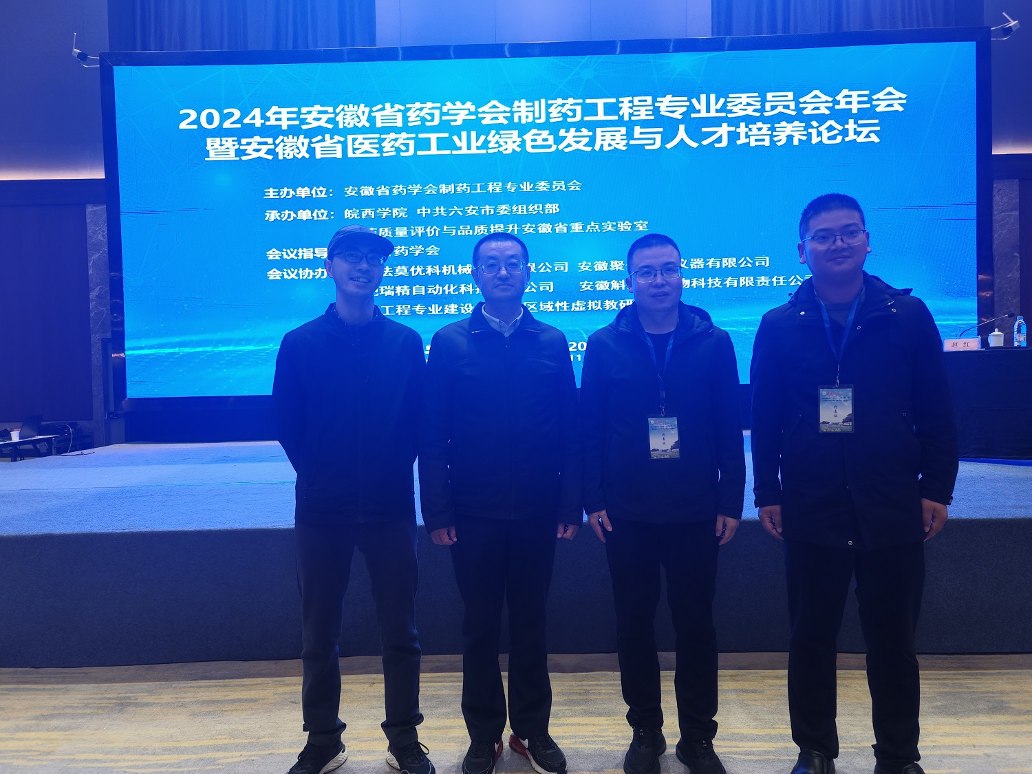 2024年11月22日至24日,2024 年安徽省药学会制药工程专业委员会年会暨安徽省医药工业绿色发展与人才培养论坛在安徽省六安市召开。我院制药工程教研室主任史建俊、姚武教授、柯仲成教授,以及孙光映博士参加了该会议。