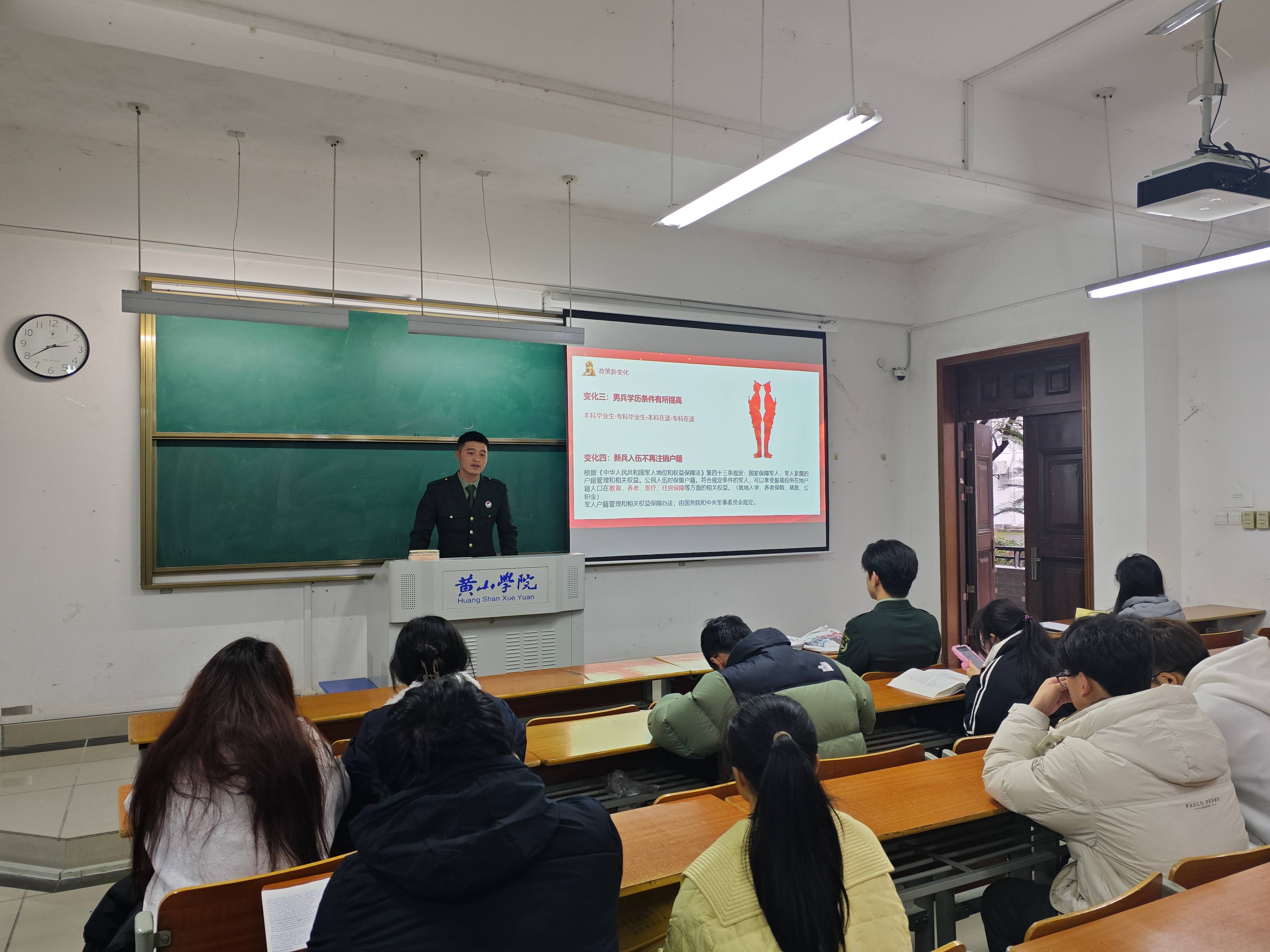 退役士兵高畅就365英国上市官方网站应征入伍学生管理办法、军队生活、个人成长等多个方面进行讲解和分享。高畅同学说“参军入伍,不仅可以锻炼我们的意志品质、提高我们的综合素质,更可以让我们在为国家和人民服务的过程中实现自我价值、书写人生华章。因此,我呼吁广大青年朋友们积极响应国家号召,踊跃报名参军,为祖国的国防事业贡献自己的青春和力量。”他以自己的亲身经历和所见所闻,向大家展示军队的魅力和军人的风采,激励更多的青年投身国防事业,为祖国的繁荣富强贡献自己的力量。