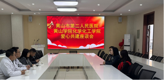 在此期间,化学化工学院与黄山市第二人民医院进行共建座谈,双方围绕爱心捐赠、志愿帮扶和心理健康辅导等进行交流。黄山市第二人民医院的副院长王海云对此次捐赠活动表示感谢,活动不仅为医院残疾困难群体解决了实际困难,更让他们感受到了来自社会的关爱与温暖。