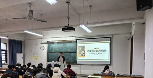 为引导青年学子在经典阅读中坚定理想信念、提升理论素养,12 月 21 日,化学化工学院在逸夫综合楼 5104 教室成功举办 “听松青年说” 系列读书分享会。本次活动聚焦马克思主义经典著作《资本论》,学生会主席刘博凯作为主讲人分享学习心得。