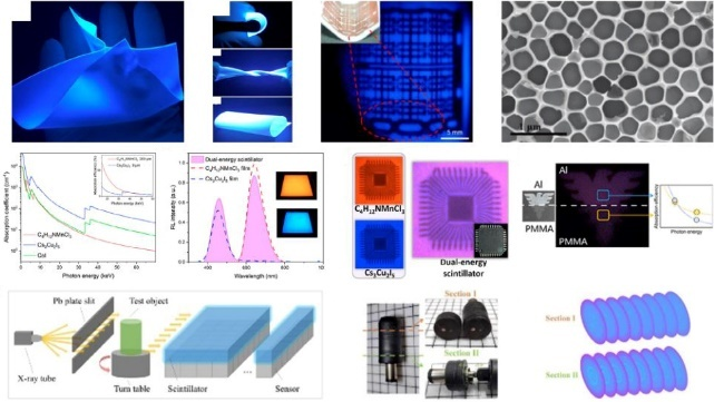 闪烁体是一种能够吸收高能X射线并将其转化为低能可见光的新型功能材料。基于闪烁体的这种特性,其被广泛应用于医疗检查(X片以及CT等医学检测,因此研究制备高效辐射发光的闪烁体材料对于高效率辐射成像具有重要意义。近年来,Cs3Cu2I5晶体因为其独特的自限域激子荧光发光,良好的X射线吸收效率和稳定性,被广泛研究并应用于X射线闪烁体相关领域,但是目前仍然存在着晶体制备困难,辐射荧光发光效率偏低,荧光寿命较长等问题,严重制约了其在X射线成像领域的应用。文章首先系统性地概述了基于Cs3Cu2I5晶体闪烁体的最新研究进展,包括晶体结构、荧光发光机制、纳米晶体和单晶的合成及其闪烁性能,重点介绍了光产额荧光寿命等关键参数。其次文章探讨了金属离子掺杂在调控Cs3Cu2I5晶体光电性能领域的作用,包括荧光发光波长、光产额荧光寿命变化。最后,文章展示Cs3Cu2I5晶体在双X射线成像、多能线阵探测器和计算机断层扫描 (CT) 成像等领域的应用前景,并为解决当前材料合成和器件集成中的挑战进行了展望。