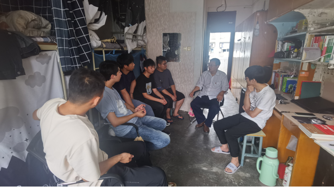 7月2日下午,化学化工学院党委副书记叶双峰带领第一党支部教师党员到所在支部学生宿舍进行走访,对宿舍卫生、安全隐患等方面进行走访检查,并在学生宿舍为化学化工第一党支部党员做了题为“抗大精神与当代青年大学生的责任担当”的专题党课,课上,叶书记详细介绍了抗大精神,并对在座的学生党员提出了三点要求,鼓励大家要志存高远,勇于担当,勤奋学习、锤炼身心,努力做新时代具有过硬本领和高尚品格的接班人。